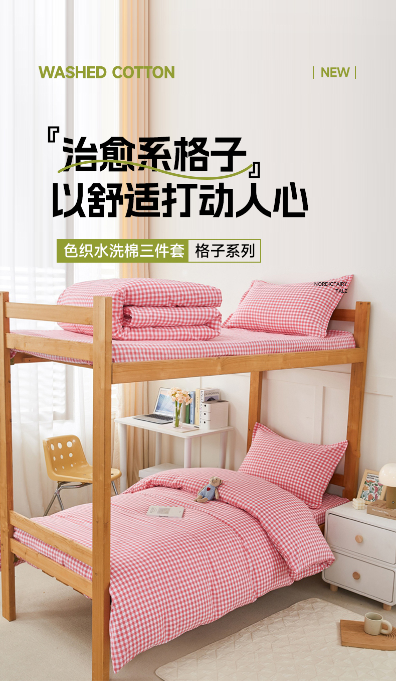 • 91家纺网 家纺一手货源 找家纺 锦润家纺 2025新款色织水洗棉三件套学生三件套全棉三件套大礼包