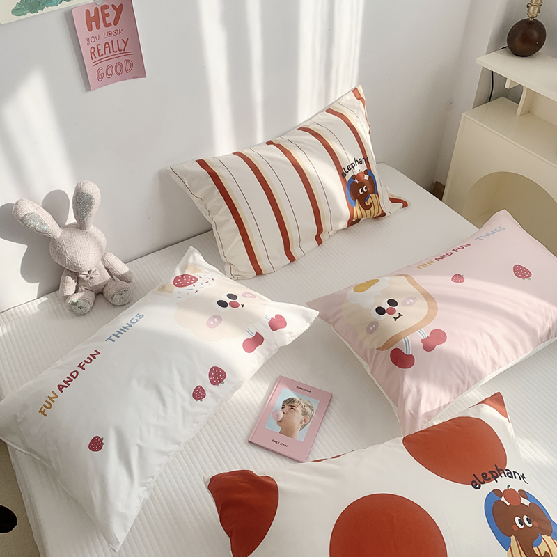 柚可家居 2024新款数码定版全棉单枕套系列-ele象+草莓吐司 芝士