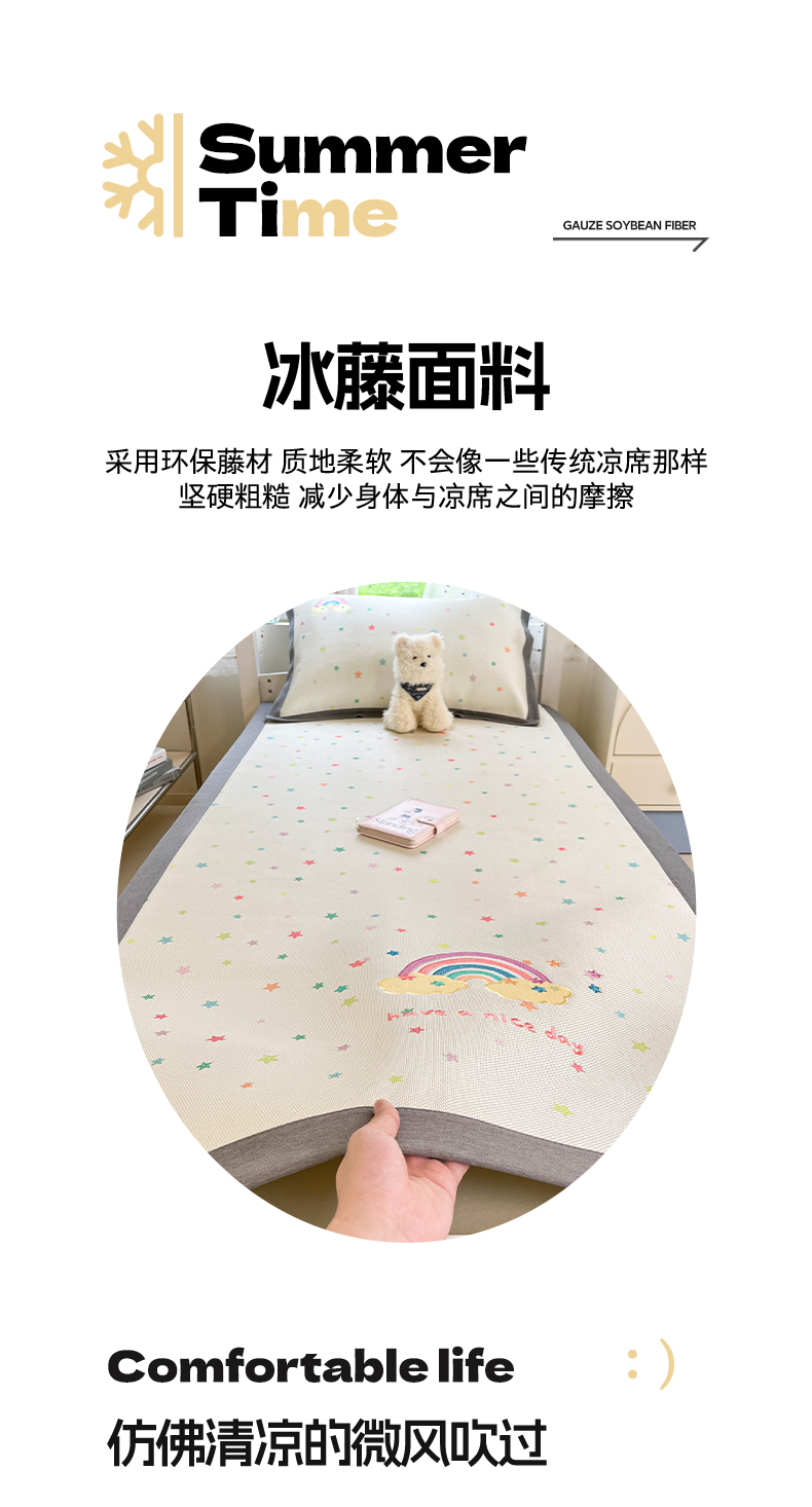商品名称:雅居纺2025新款A类加厚三明治底绣花冰藤席 七彩虹