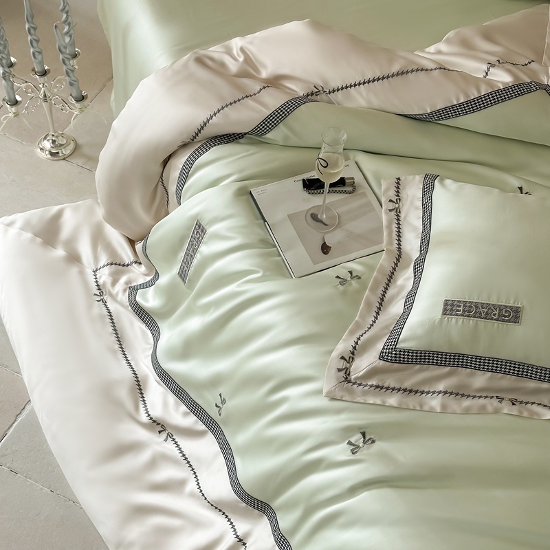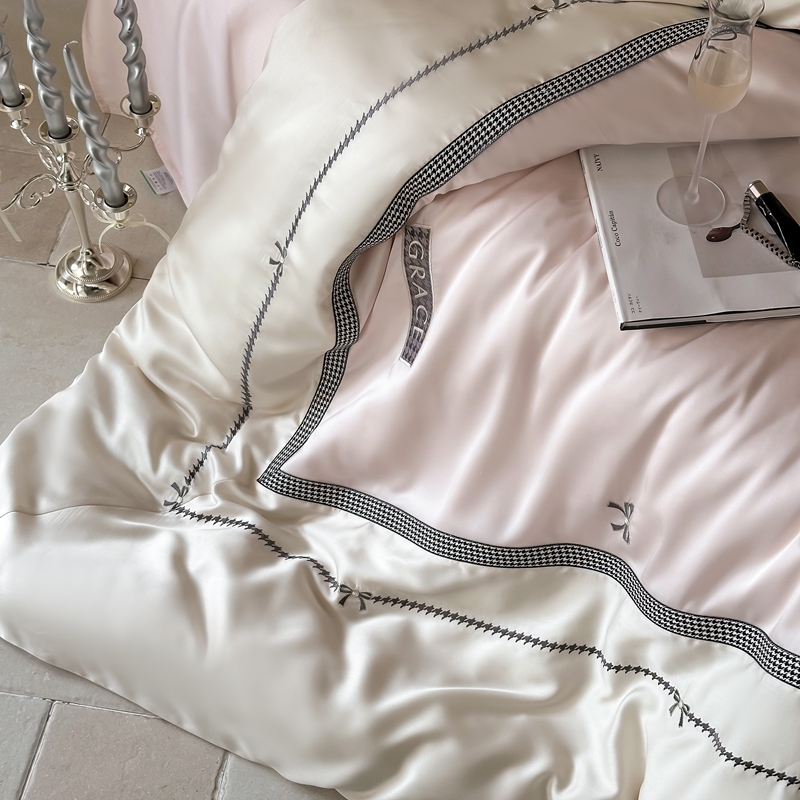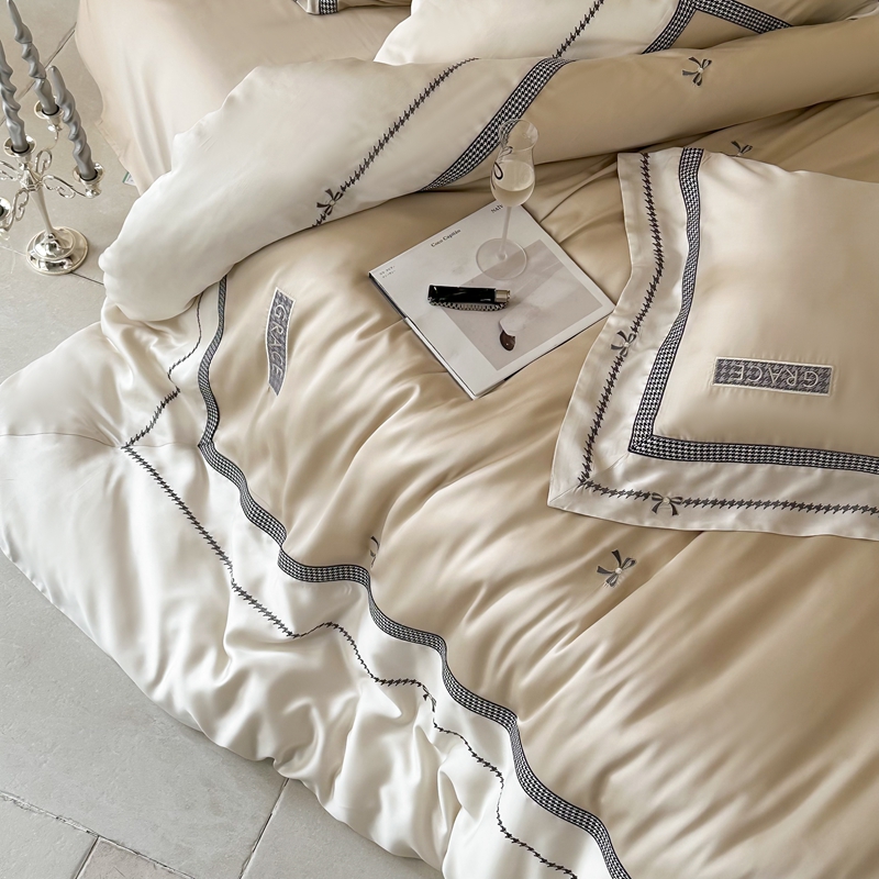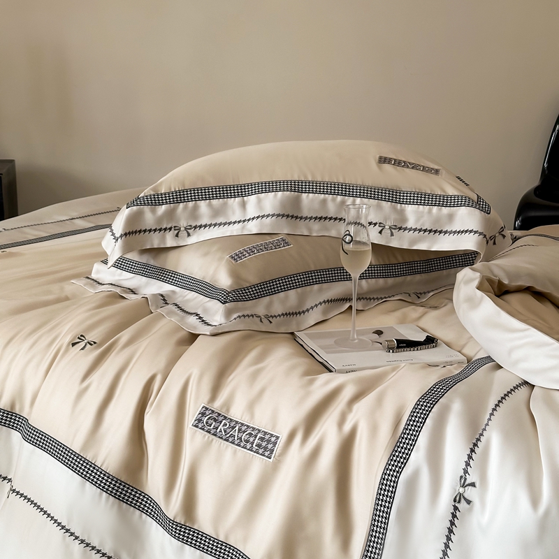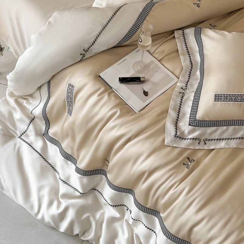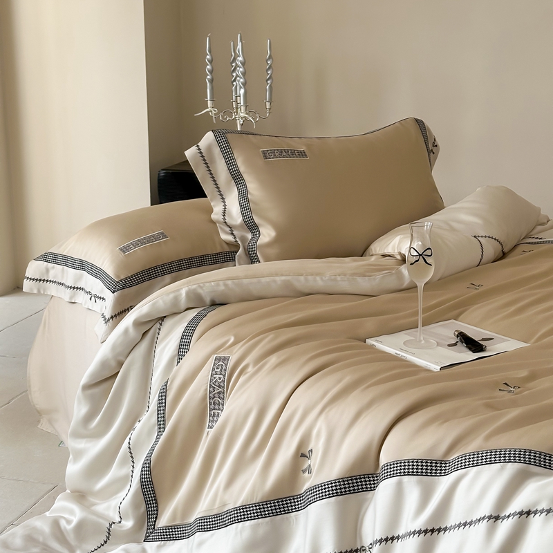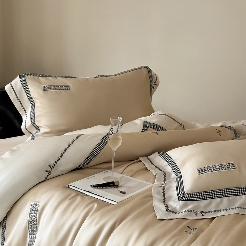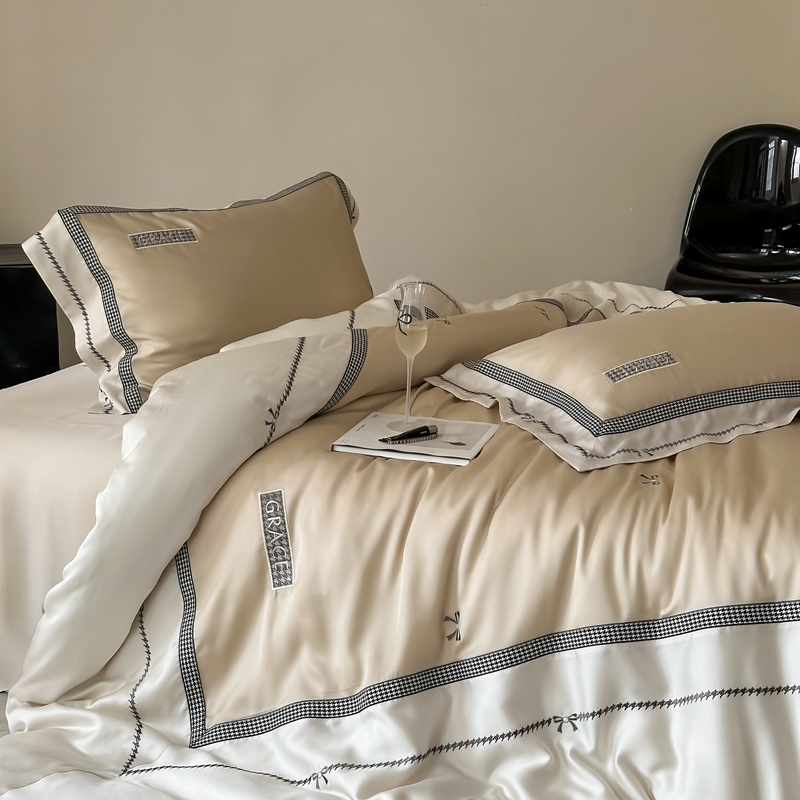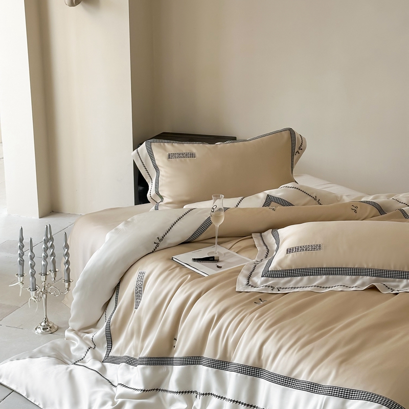 当前位置: 91家纺网 > 商品网购 > 床品套件 > 四件套 > 莱赛尔四件套 > (总)咏绒家纺2025新款60S奥地利兰精天丝绣花四件套千鸟格-克洛伊