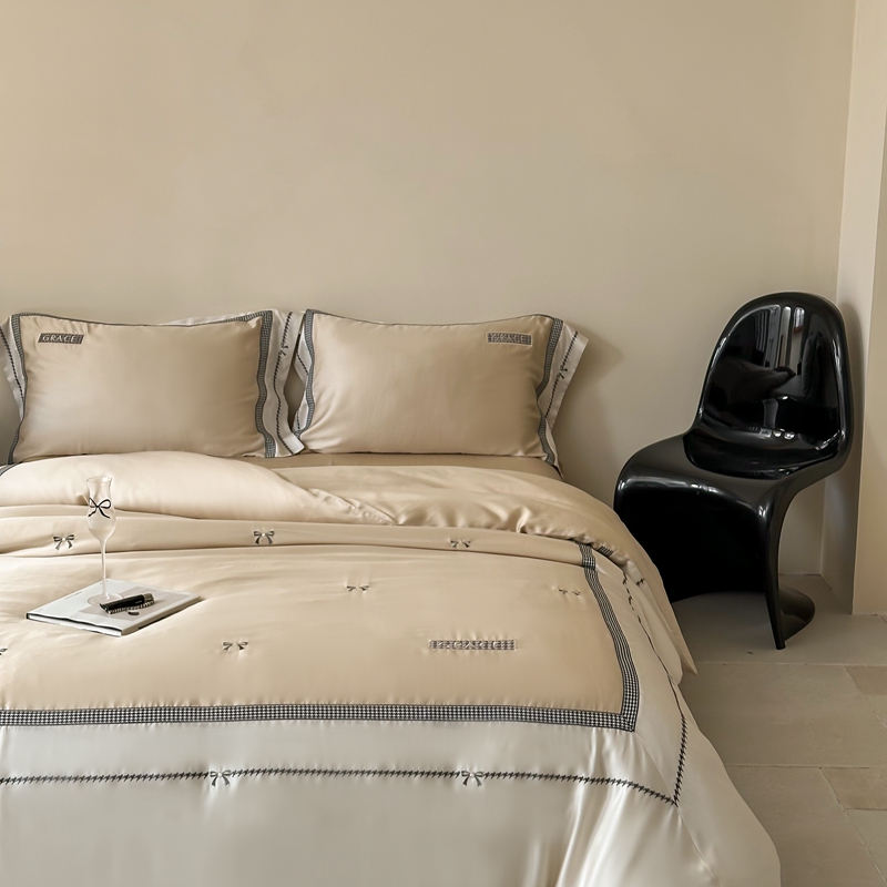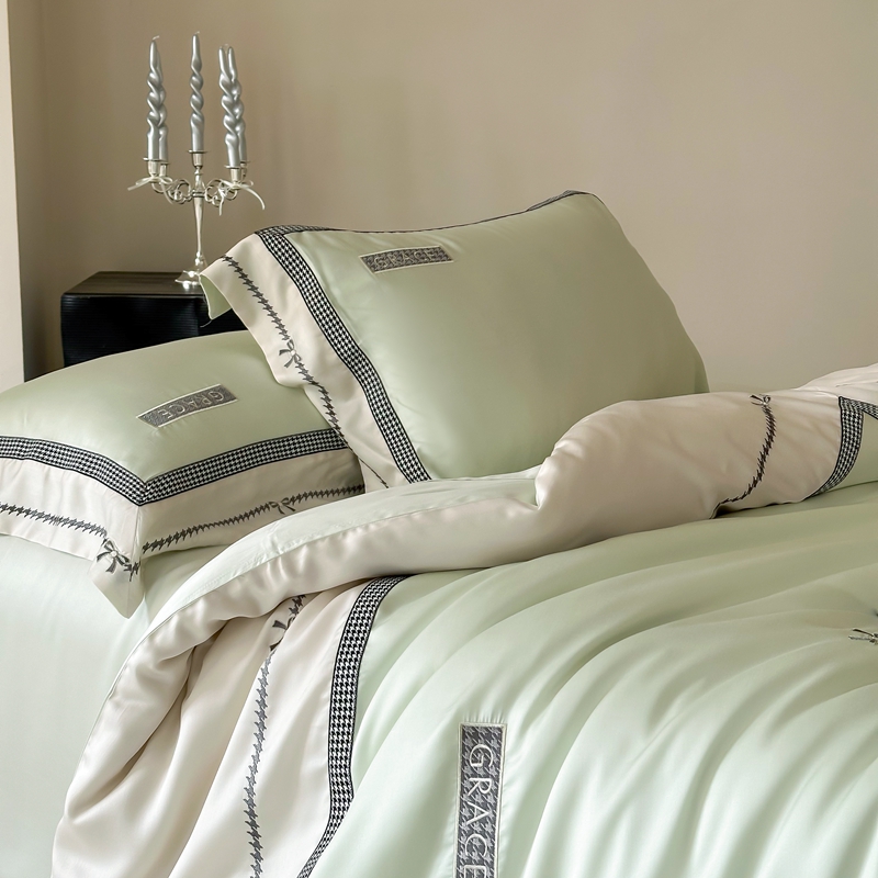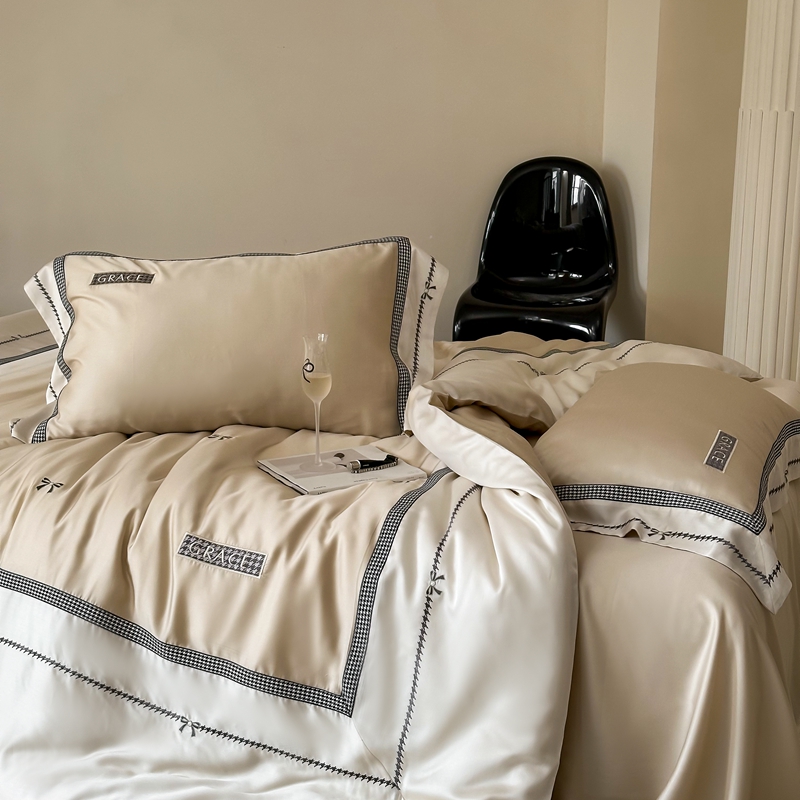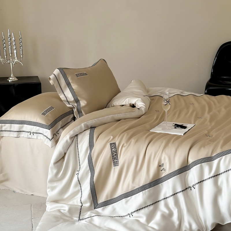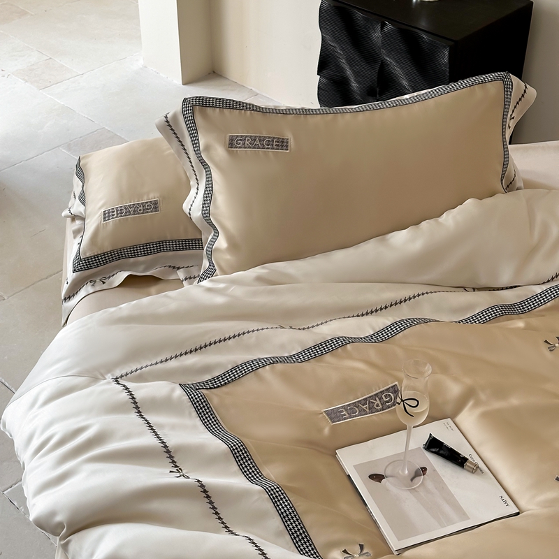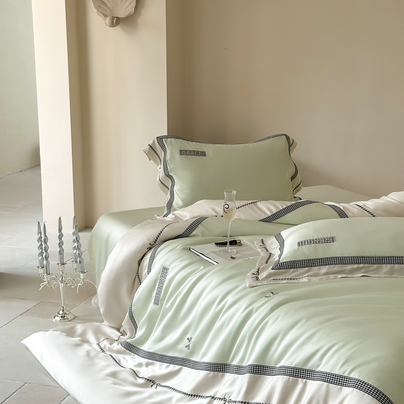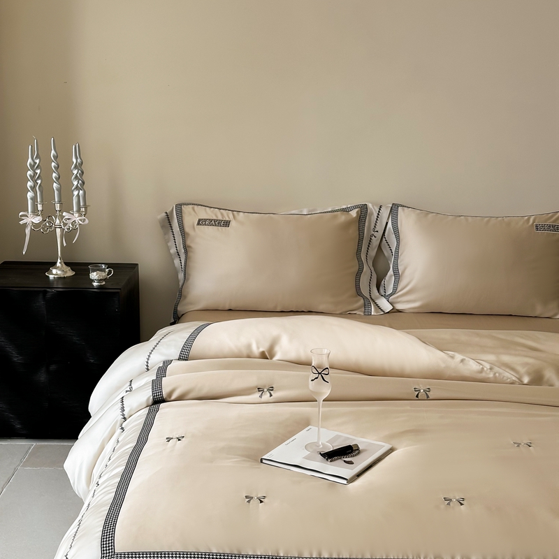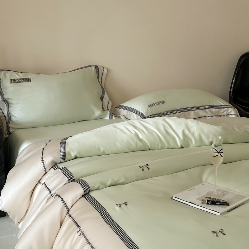 当前位置: 91家纺网 > 商品网购 > 床品套件 > 四件套 > 莱赛尔四件套 > (总)咏绒家纺2025新款60S奥地利兰精天丝绣花四件套千鸟格-克洛伊