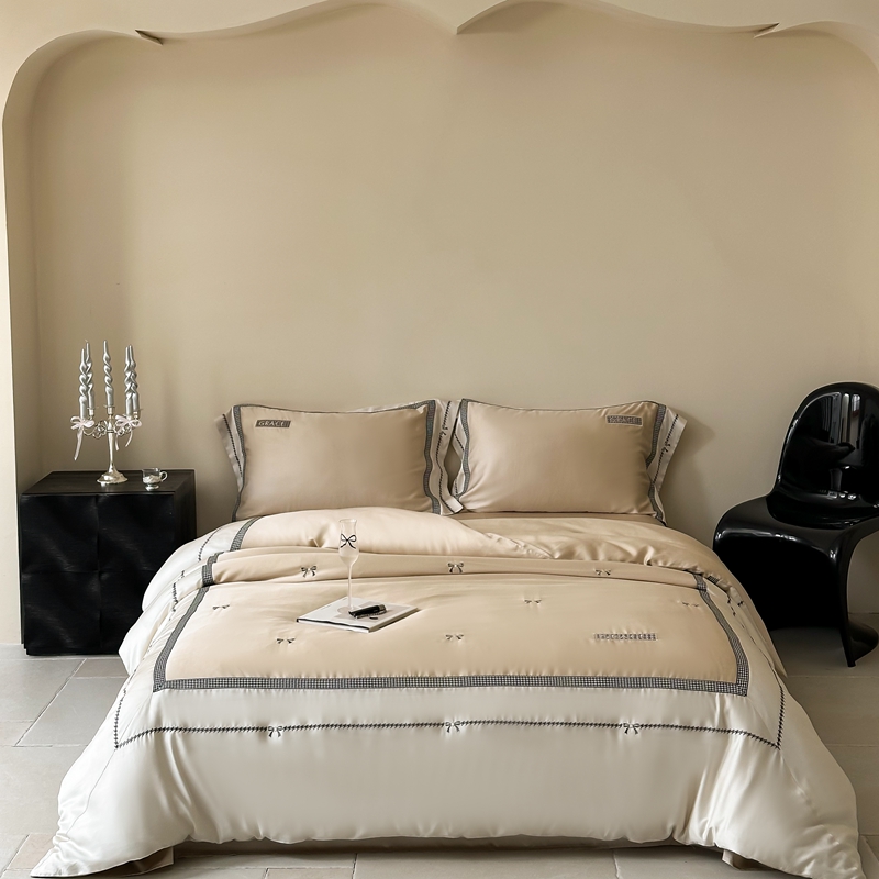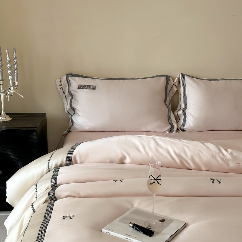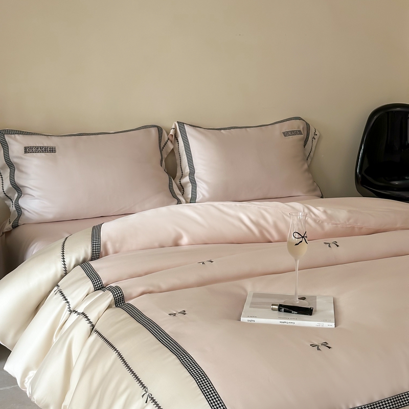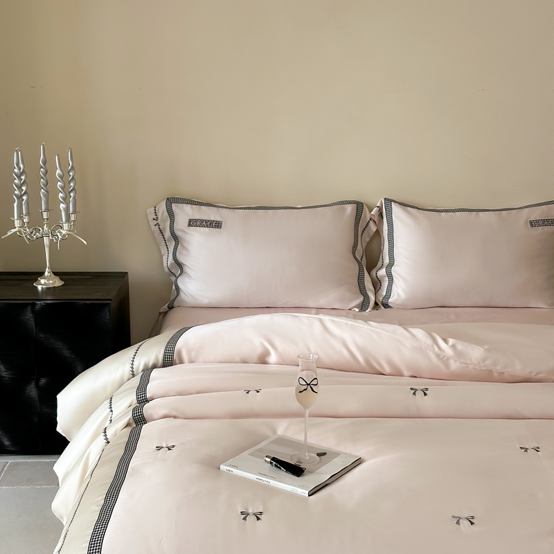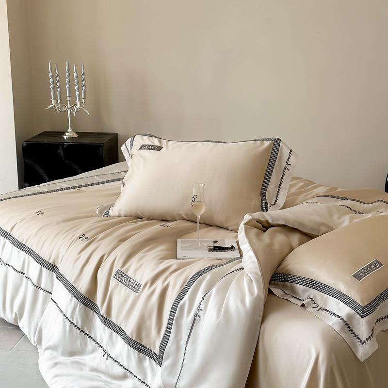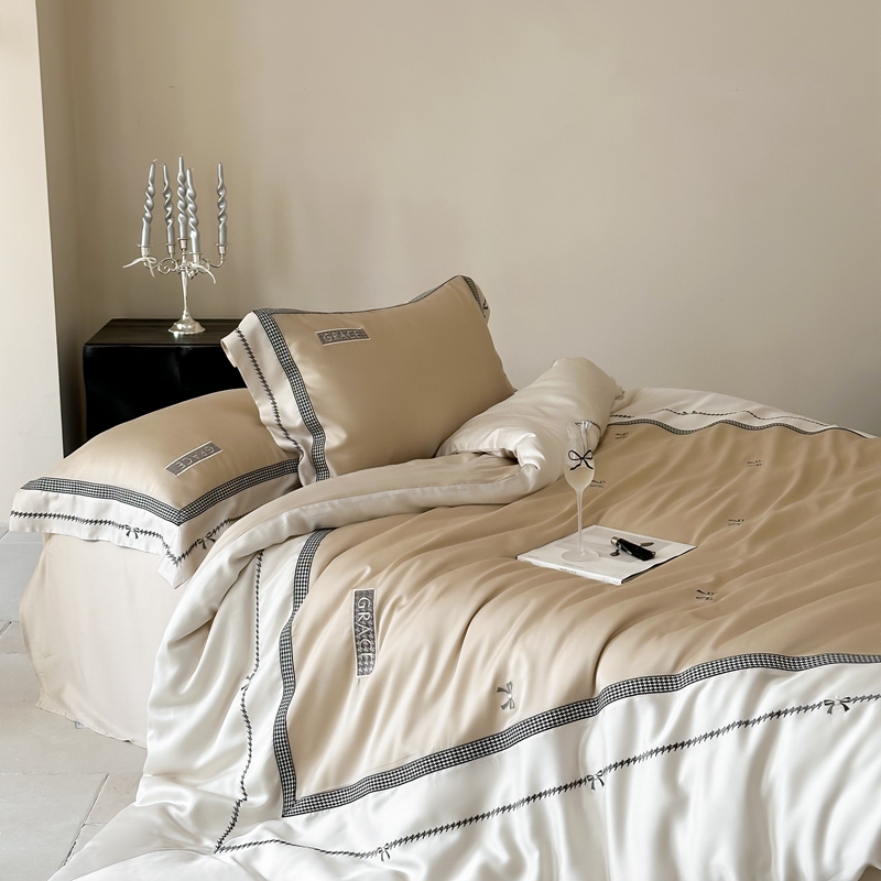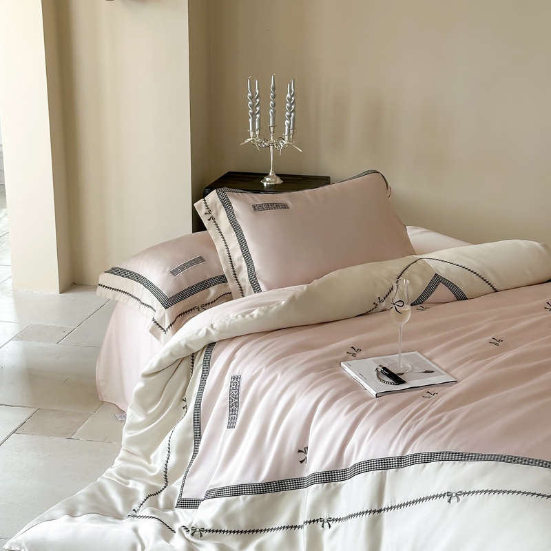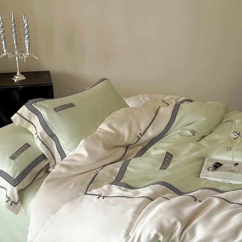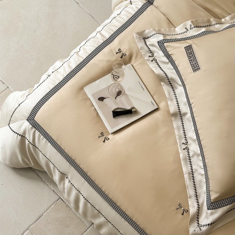 当前位置: 91家纺网 > 商品网购 > 床品套件 > 四件套 > 莱赛尔四件套 > (总)咏绒家纺2025新款60S奥地利兰精天丝绣花四件套千鸟格-克洛伊