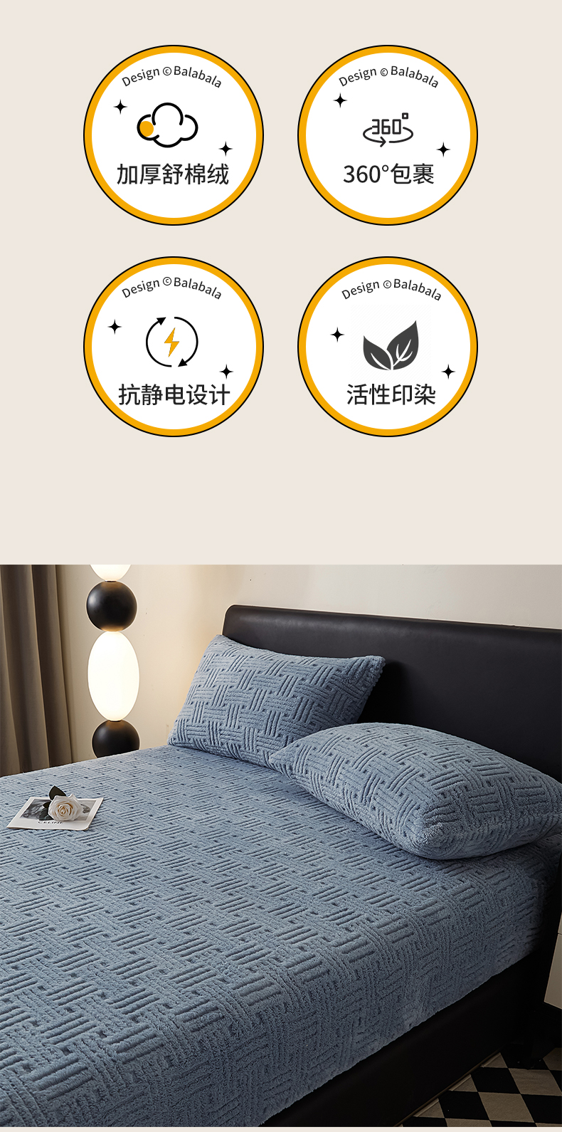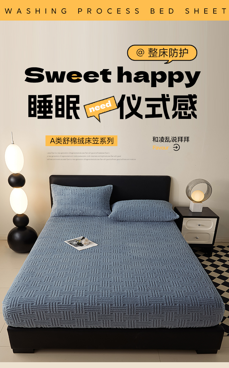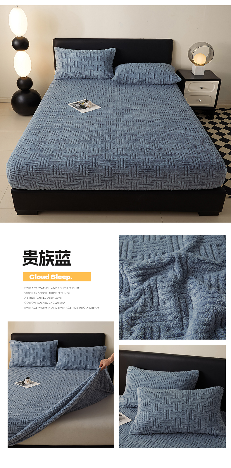 • 91家纺网 家纺一手货源 找家纺 欧邦2025新款提花舒棉绒塔芙绒床笠跨境-场景一 贵族蓝