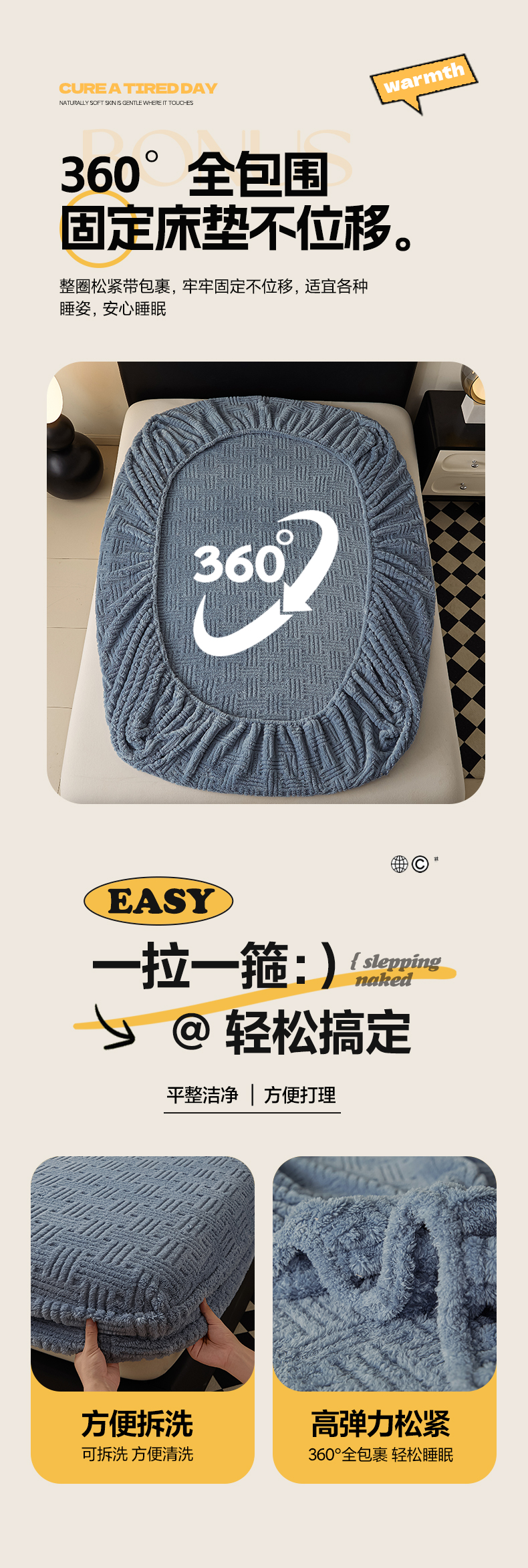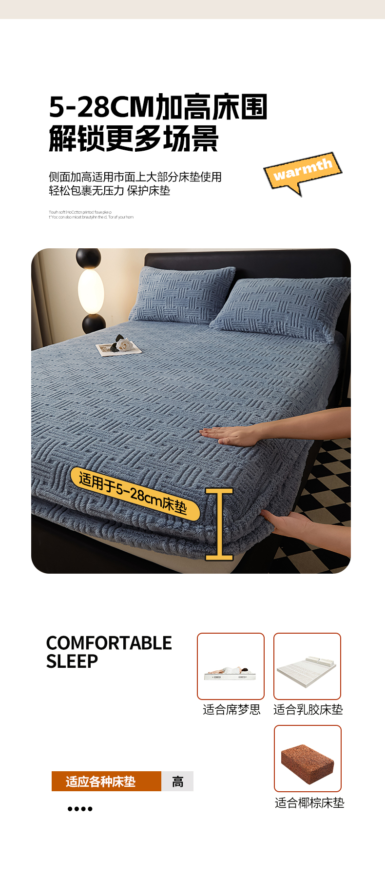 (总)欧邦 2025新款提花暖阳绒单床笠,苍穹蓝,初雪白,海棠粉,慕斯灰,青瓷绿,檀木咖