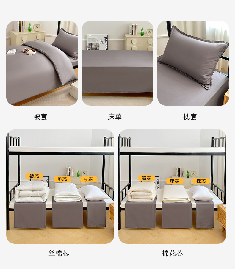 当前位置: 91家纺网 > 商品网购 > 床品套件 > 六件套 > 锦润家纺 2025新款13372全棉纯棉学生宿舍上下铺三件套和六件套 银灰色