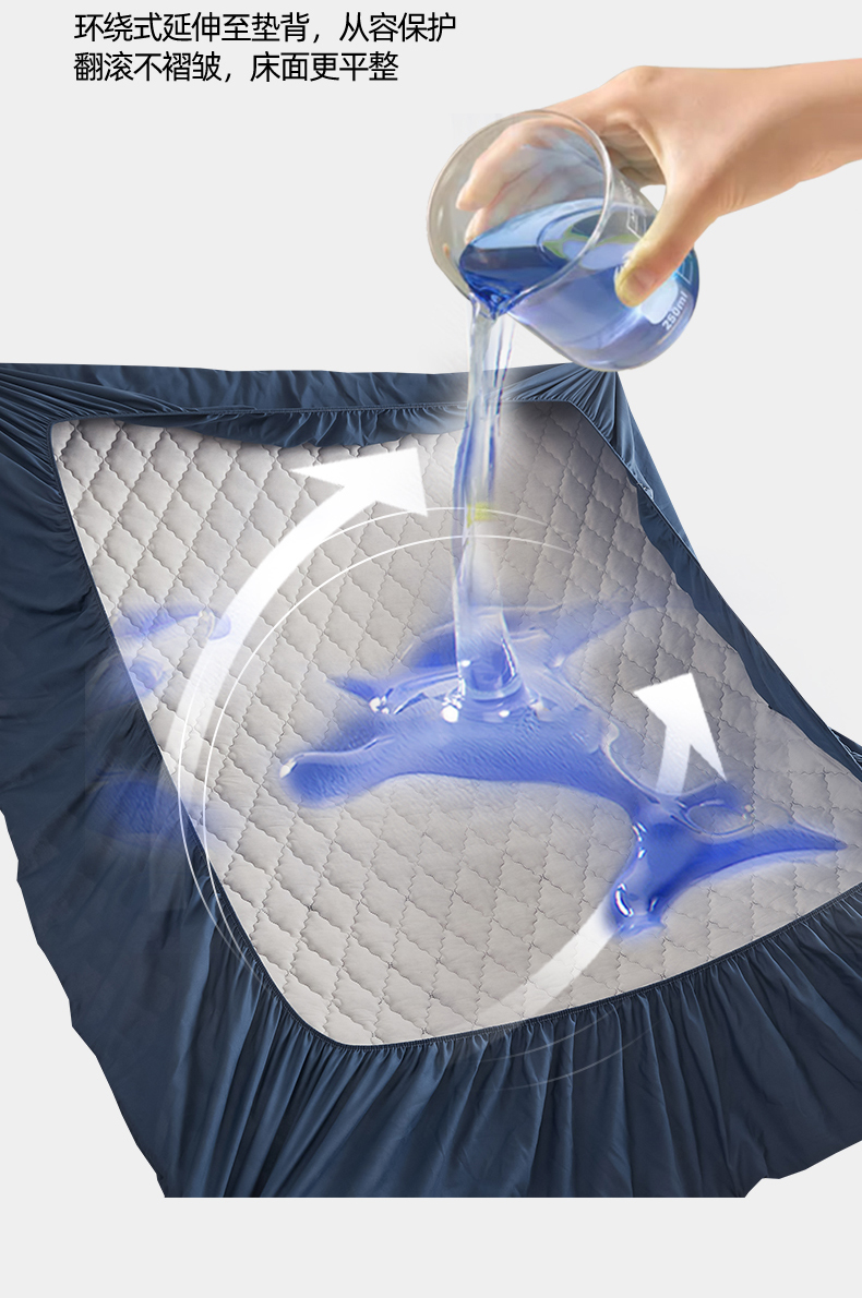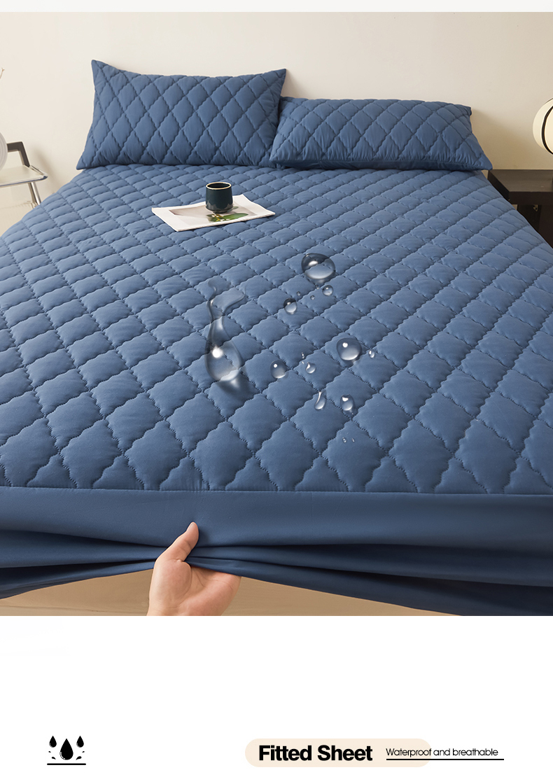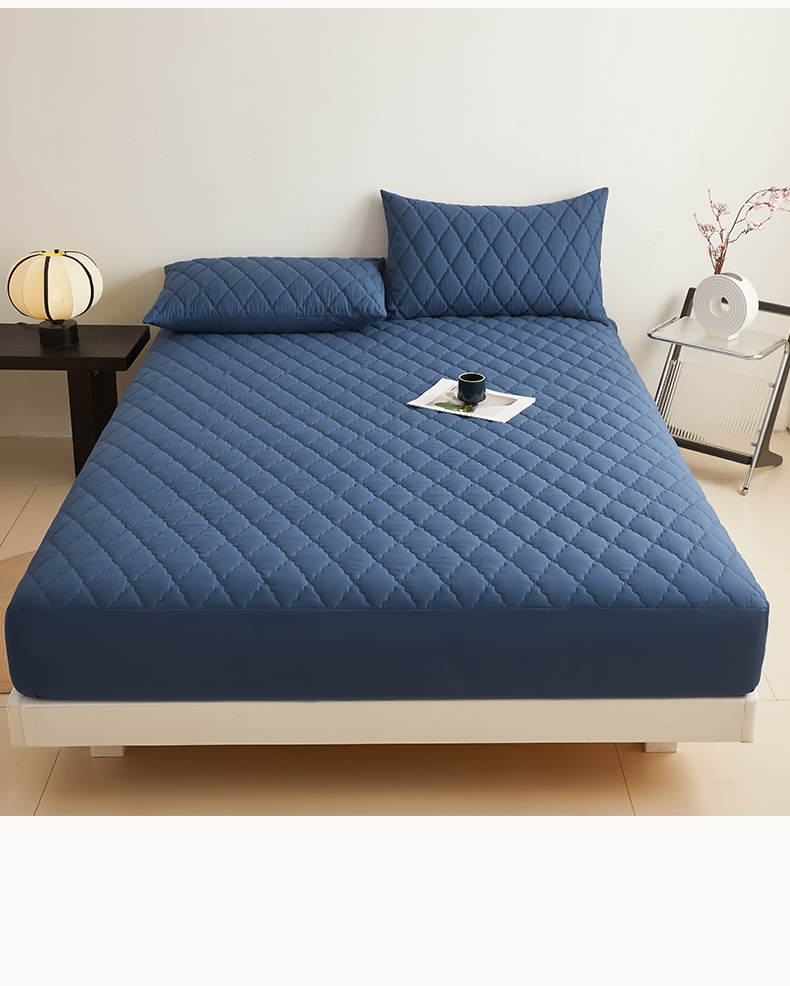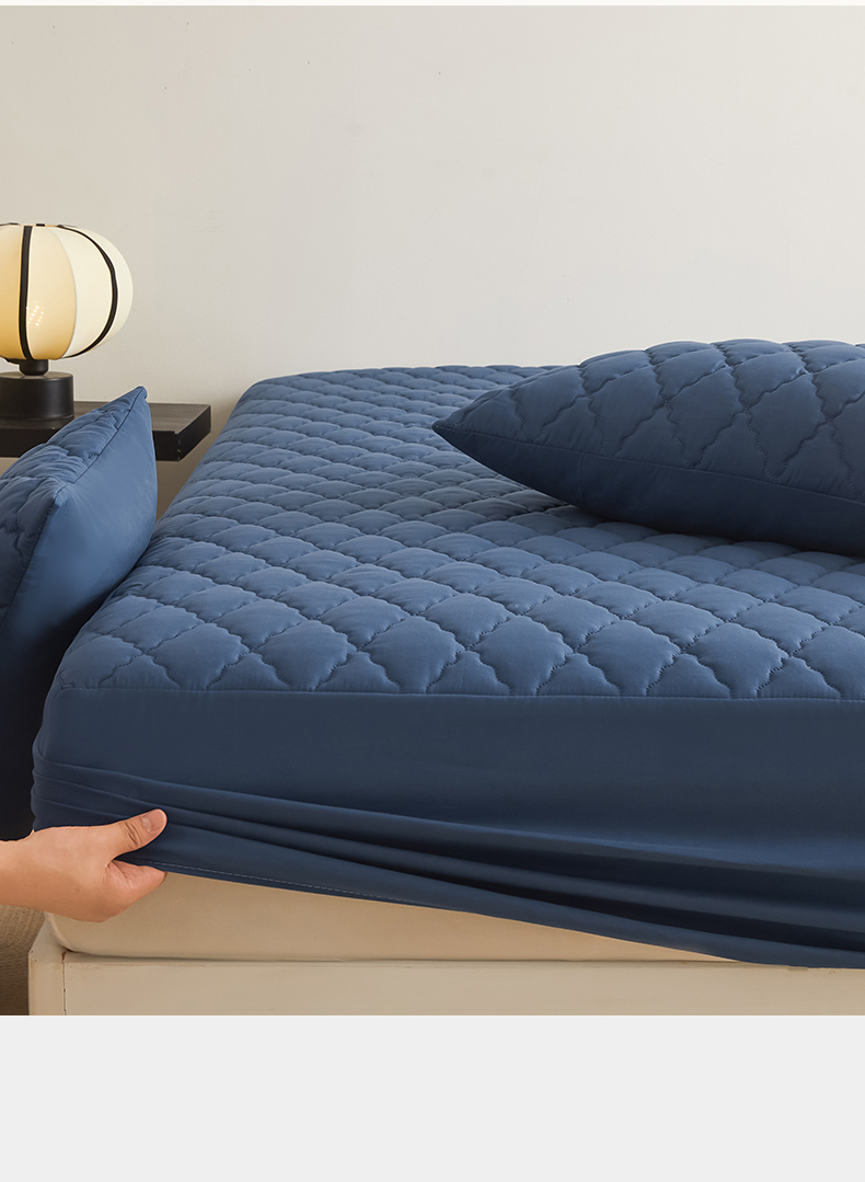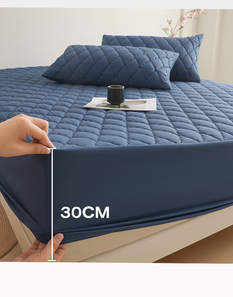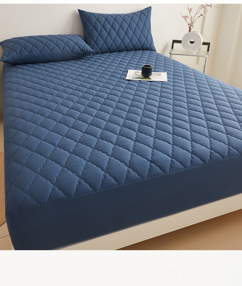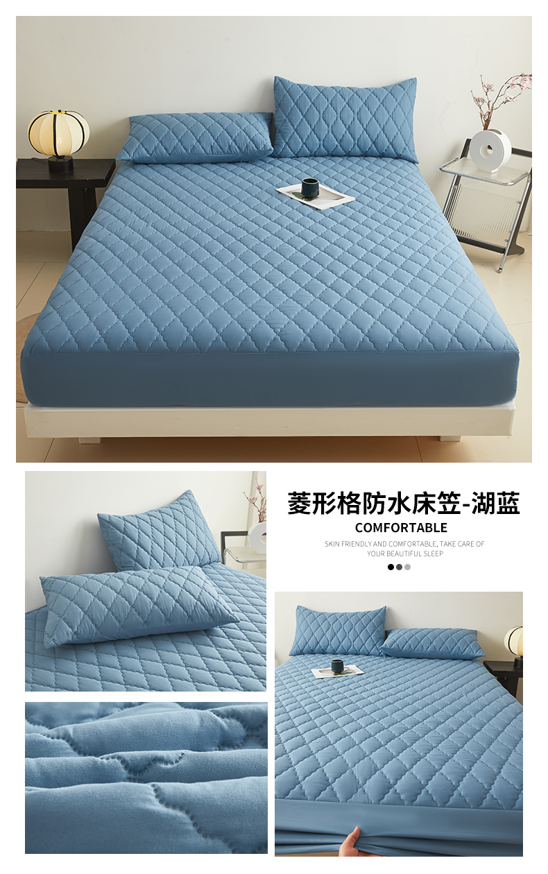 雯豆家纺 2025新品外贸亚马逊纯色防水夹棉床笠跨境电商速卖通床罩可定制尺寸 菱形格防水床笠-藏蓝
