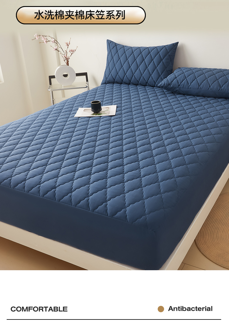 • 91家纺网 家纺一手货源 找家纺 雯豆家纺 2025新品外贸亚马逊纯色防水夹棉床笠跨境电商速卖通床罩可定制尺寸 菱形格防水床笠-藏蓝