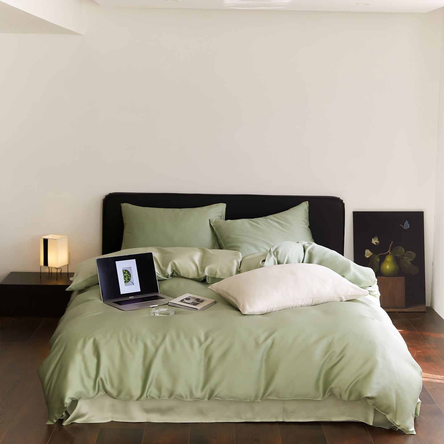 群鹿蚕丝羽绒馆 2025新款60支兰精天丝纯色双拼四件套 欧芹绿