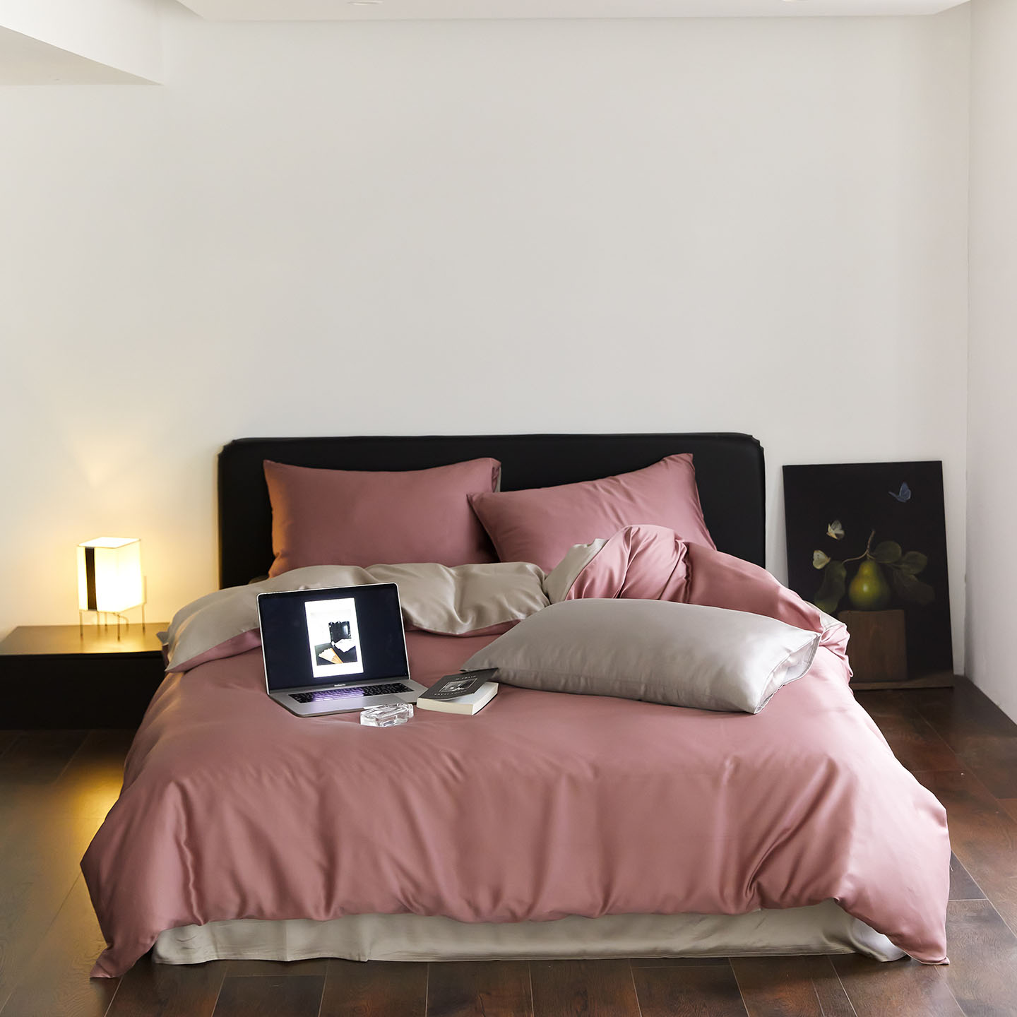 商品名称:群鹿蚕丝羽绒馆 2025新款60支兰精天丝纯色双拼四件套 夜影凝香-霜华银
