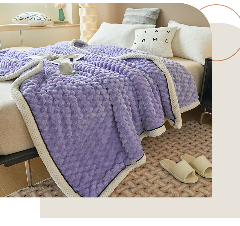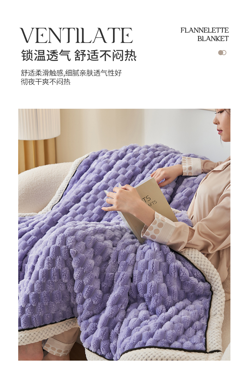 商品名称:乐家欣 2025新款A类金龟绒多功能毛毯高克重法莱绒牛奶绒贝贝绒保暖毛毯 香芋紫