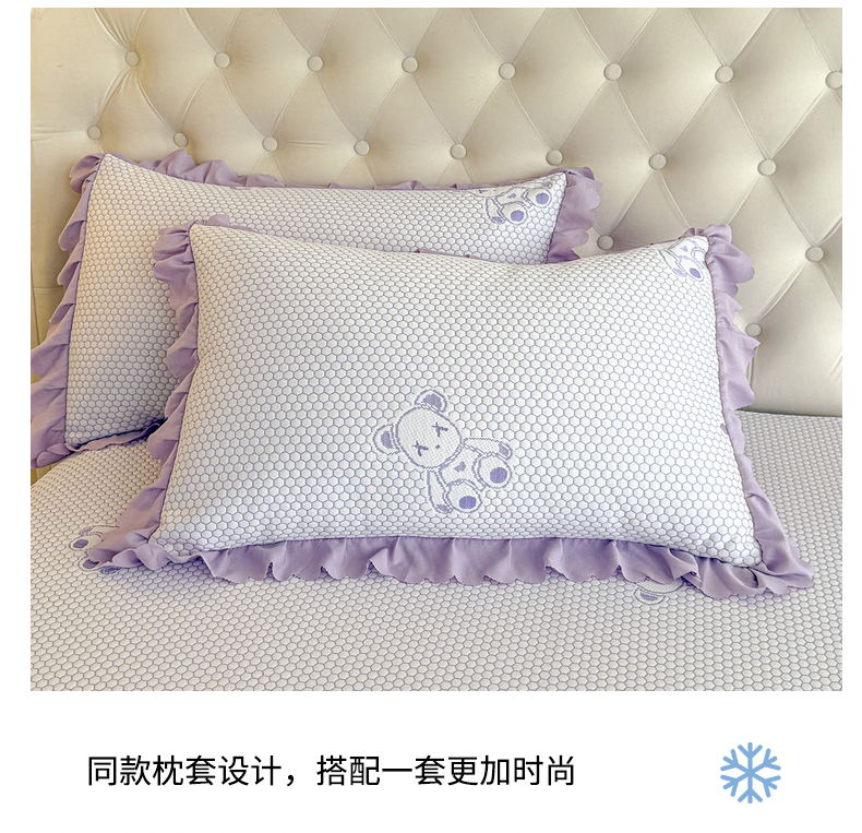 商品名称:美莱家纺 2025新款床盖款冰豆豆凉席床裙冰丝席小冰熊夏被单件三件套四件套 小冰熊-紫