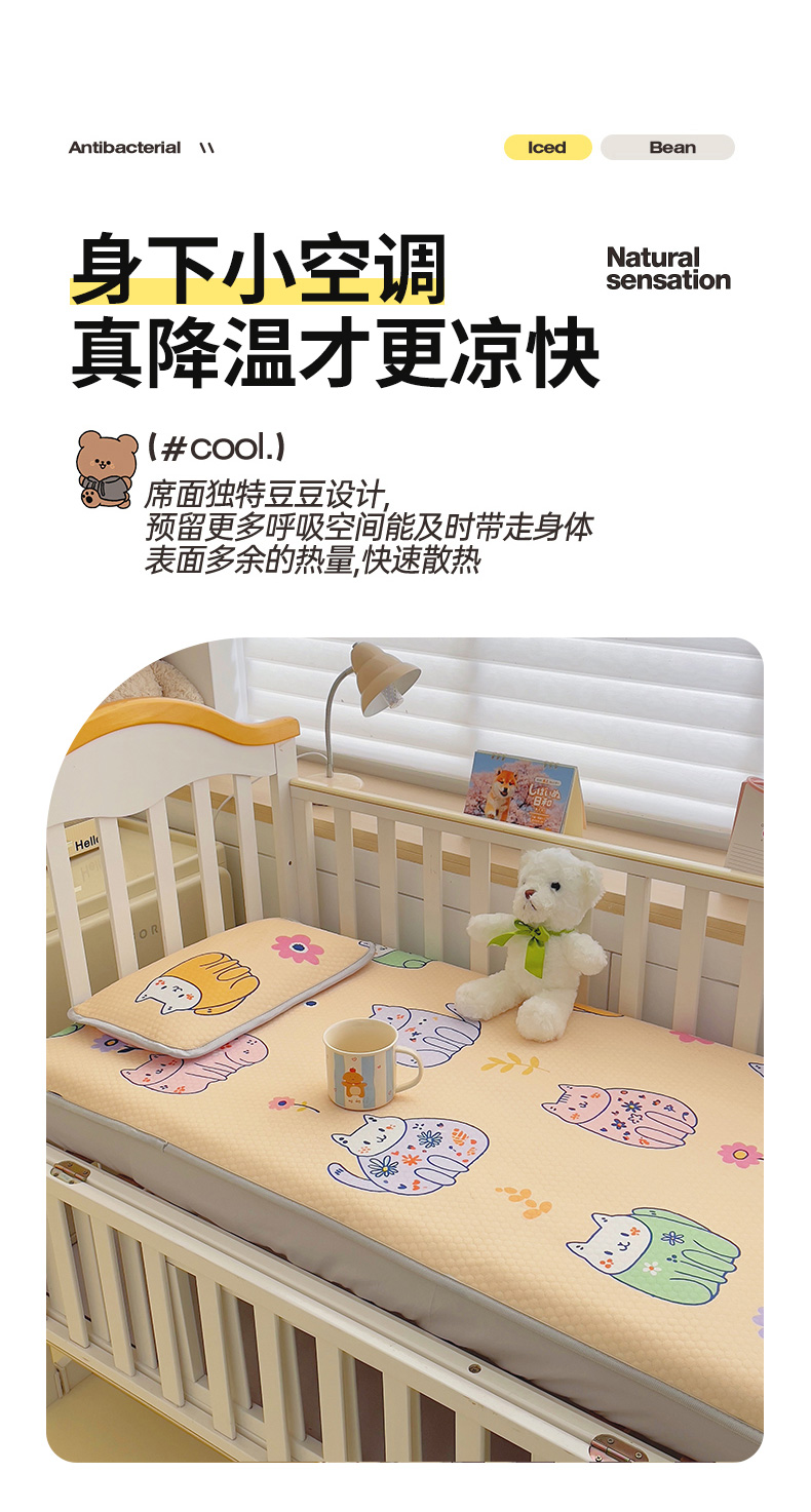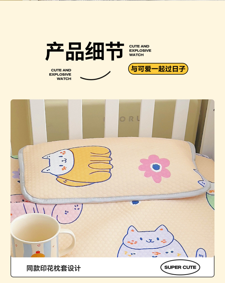 • 91家纺网 家纺一手货源 找家纺 小叮当家纺仓储工厂店 (提供买家秀 爆款花型 不断货)2025新款冰豆豆儿童卡通凉席床笠 小猫