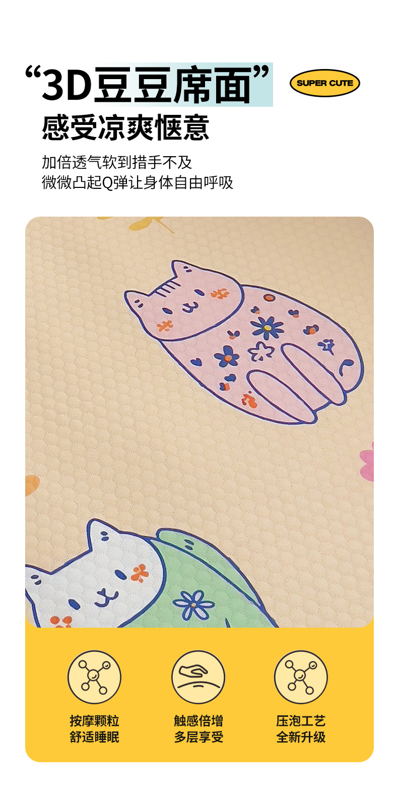 当前位置: 91家纺网 > 商品网购 > 床上用品 > 凉席 > 小叮当家纺仓储工厂店 (提供买家秀 爆款花型 不断货)2025新款冰豆豆儿童卡通凉席床笠 小猫