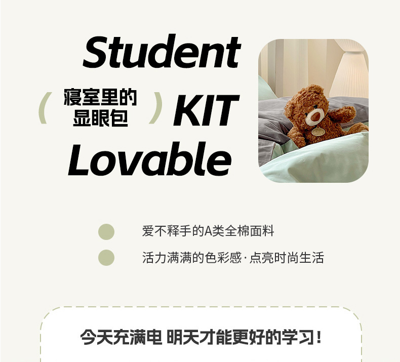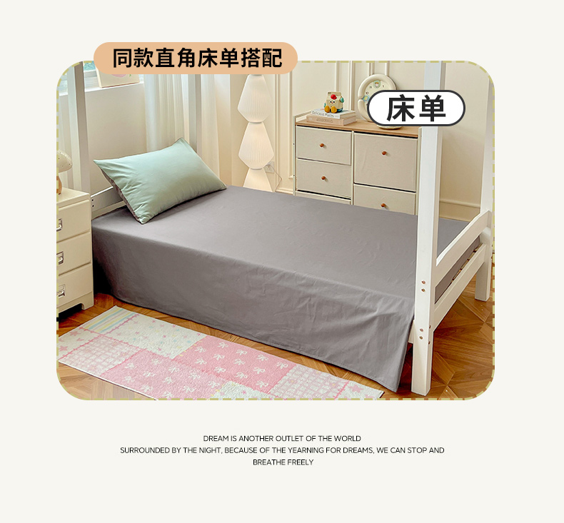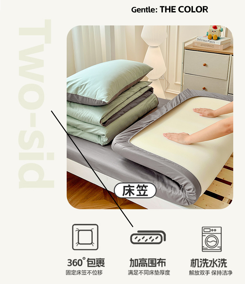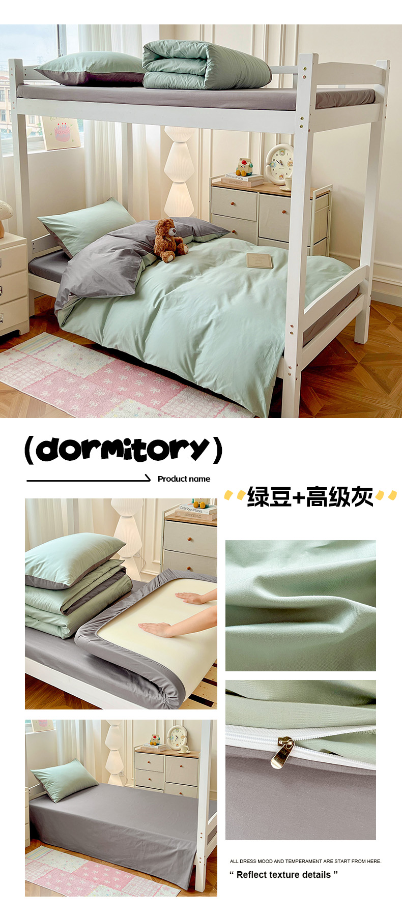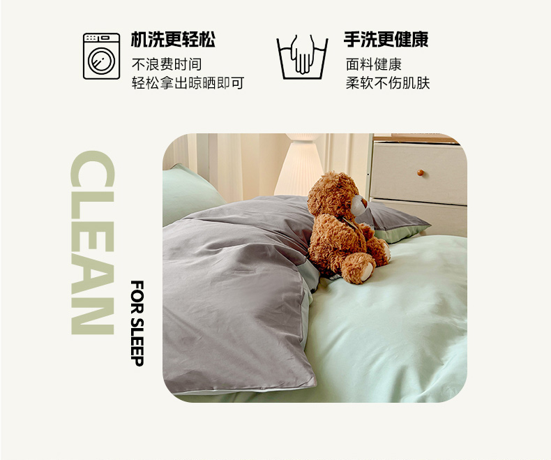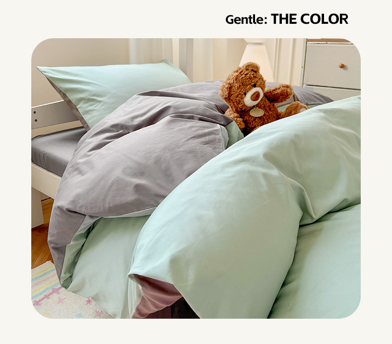 商品名称:泽西家纺 2025新款A类加密全棉40支13376简约风宿舍双拼纯色纯棉学生三件套 豆绿+高级灰