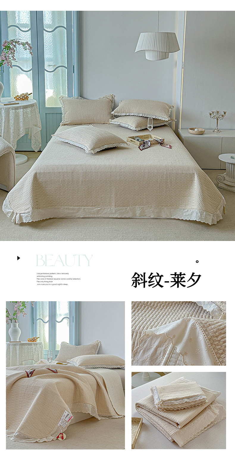 • 91家纺网 家纺一手货源 找家纺 源舜家纺 2025新款斜纹长绒棉全棉镂空花边床盖三件套 斜纹-莱夕