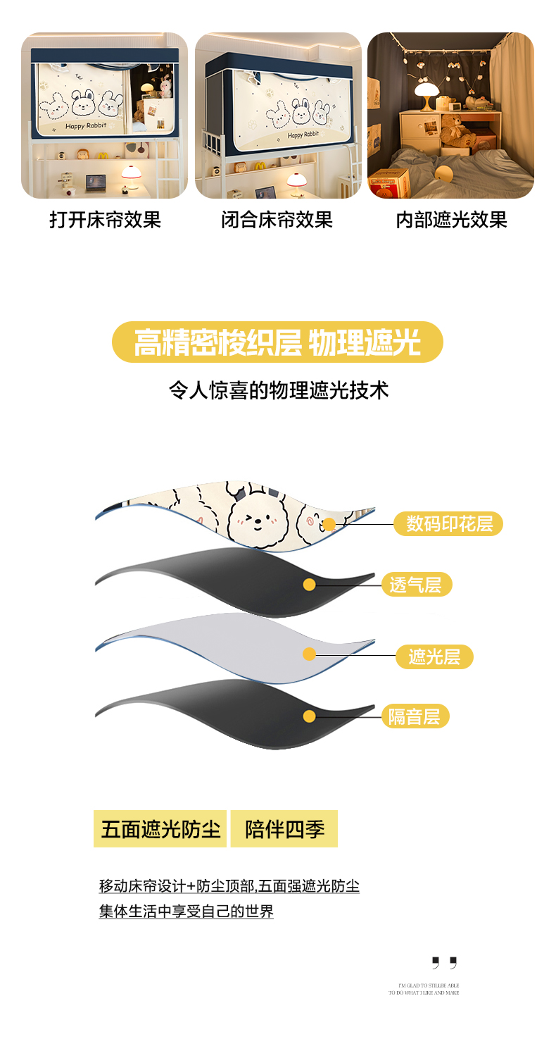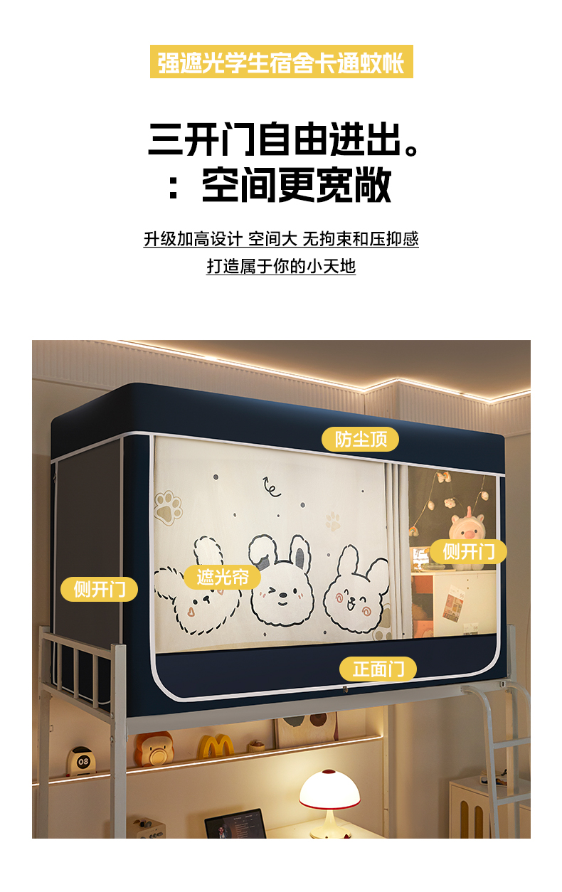当前位置: 91家纺网 > 商品网购 > 床上用品 > 蚊帐 > 学生蚊帐 > 世婕 2025新款高精密梭织强遮光学生宿舍卡通蚊帐 梭织-兔宝宝
