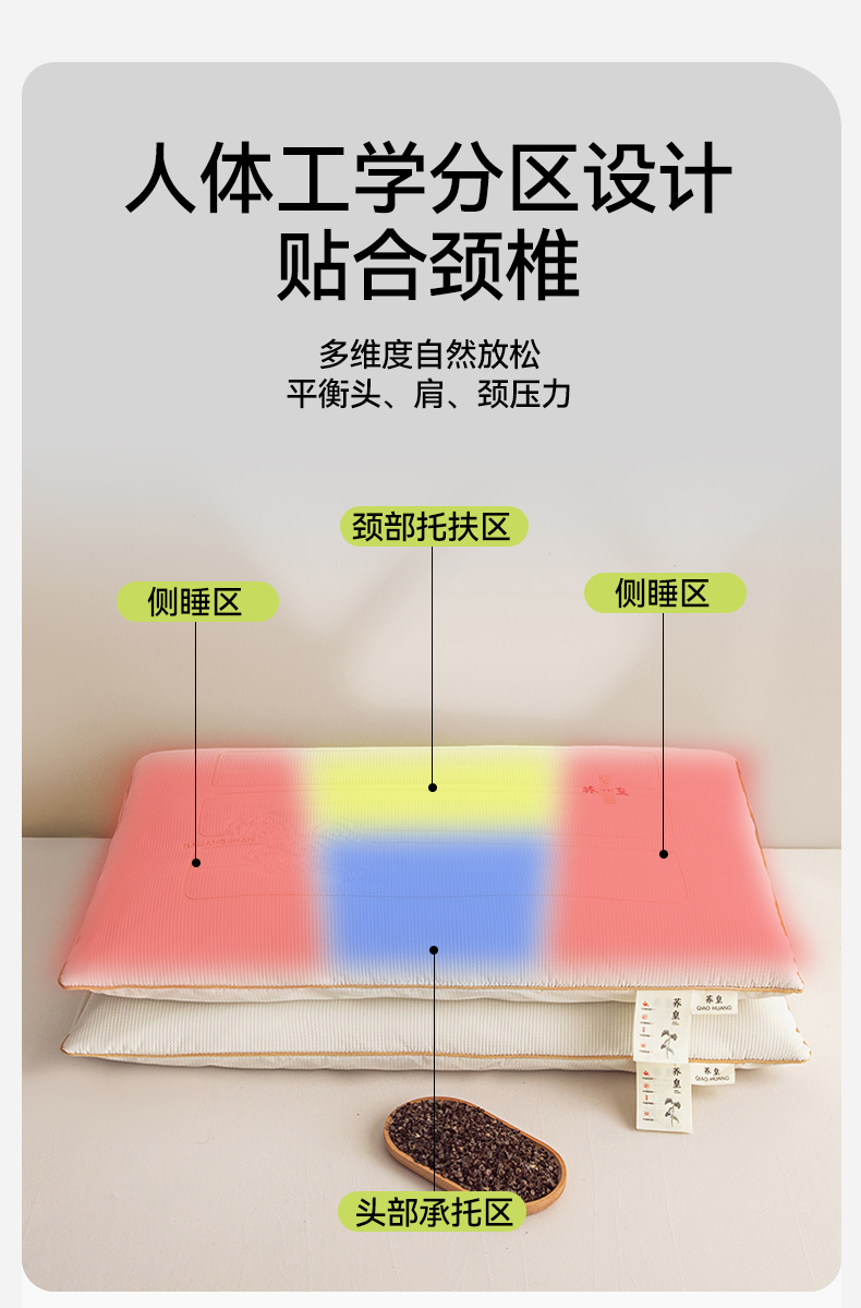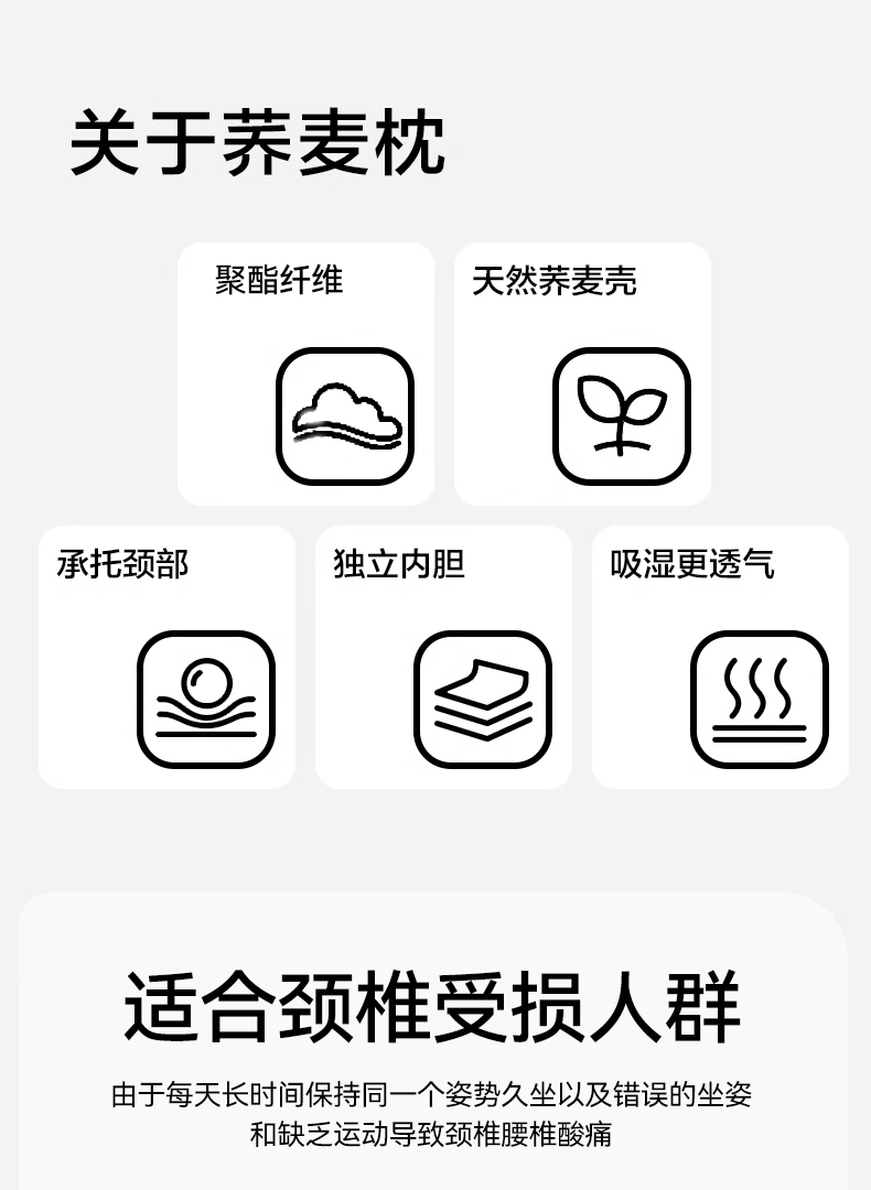 商品名称:圣之寐 2025新款荞皇纯荞麦枕 白色48*74