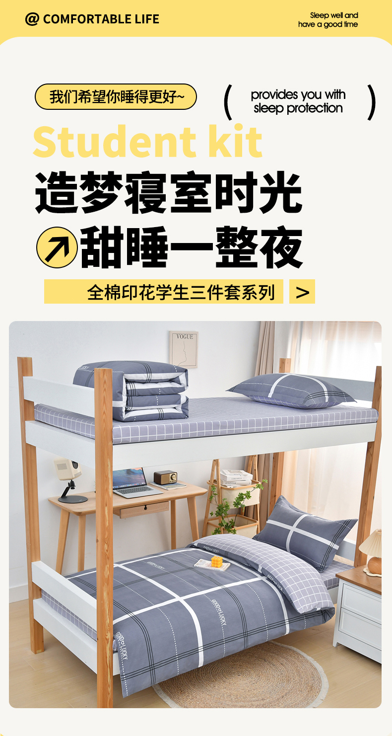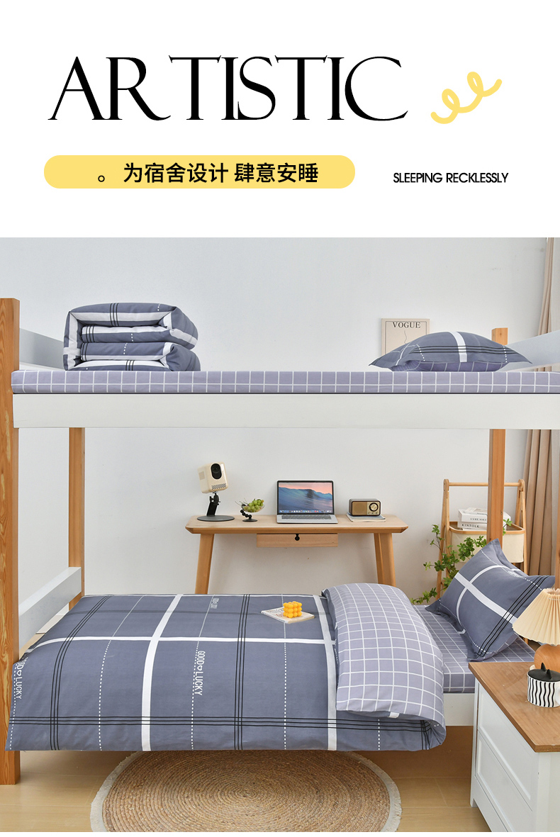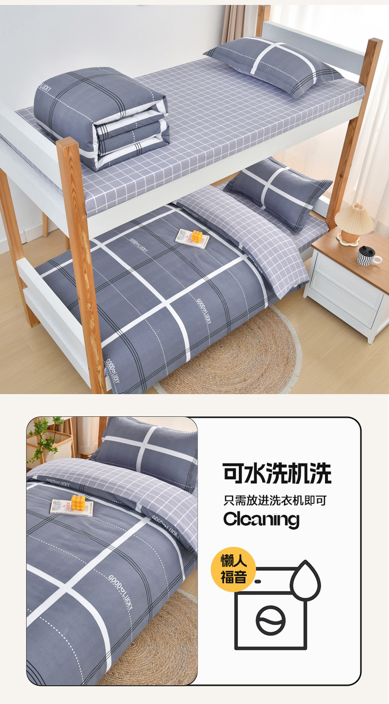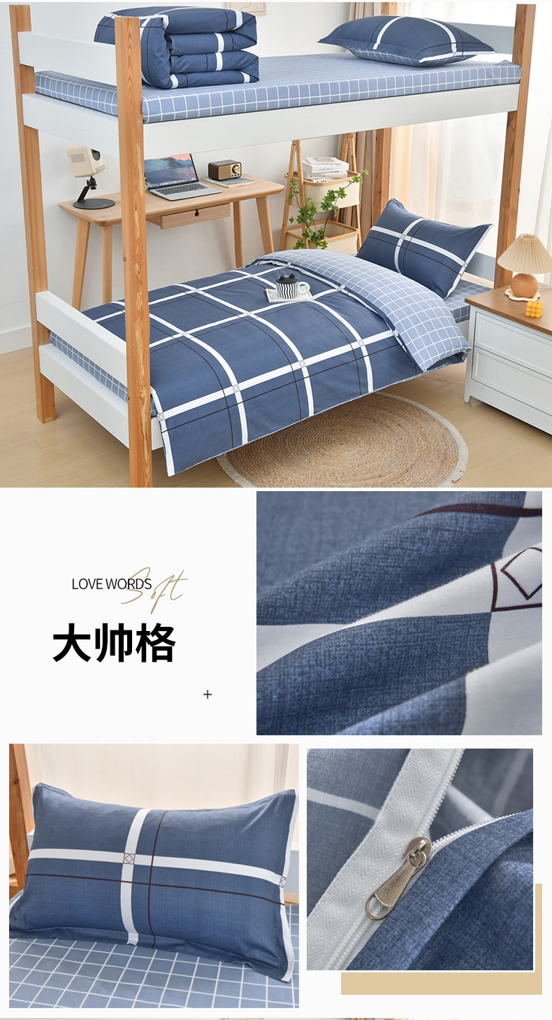 当前位置: 91家纺网 > 商品网购 > 床品套件 > 四件套 > 全棉普通四件套 > 乐旗家纺 2025新款全棉13372印花学生上下铺套件宿舍三件套 校园风格