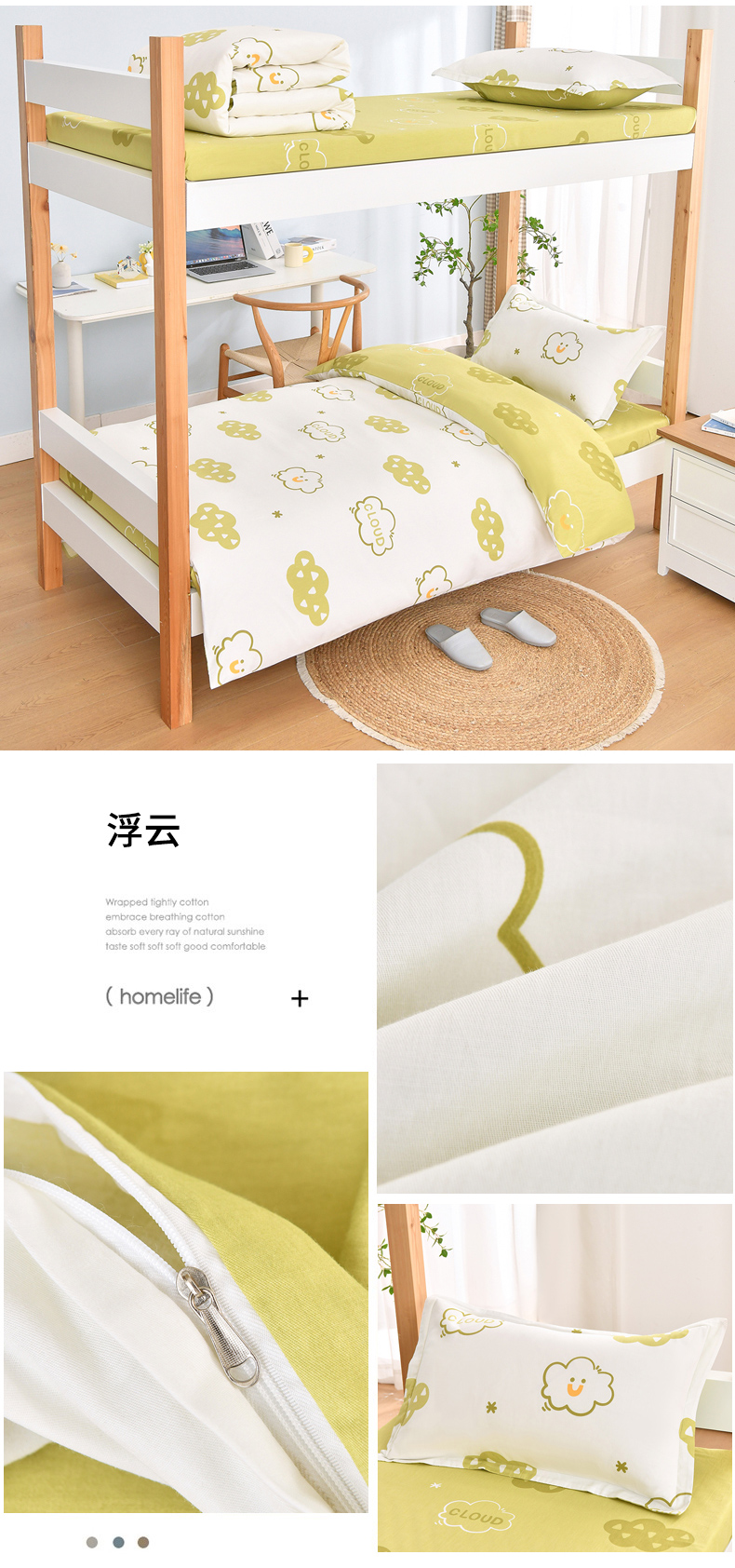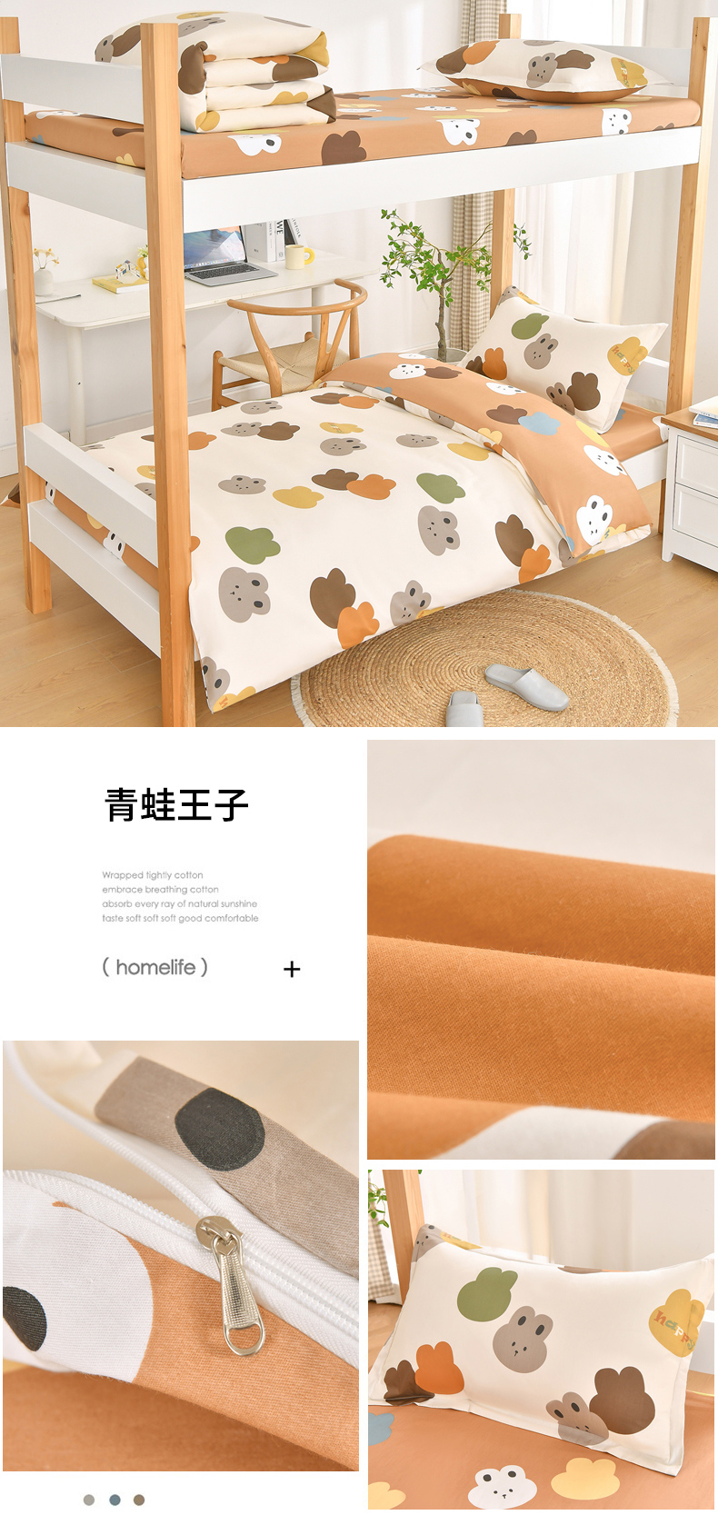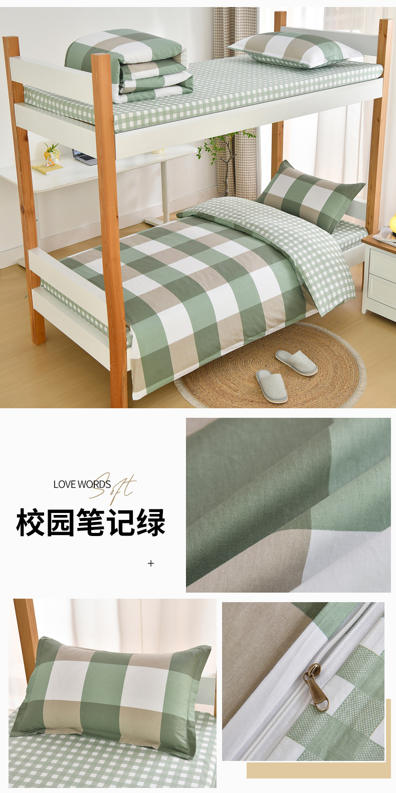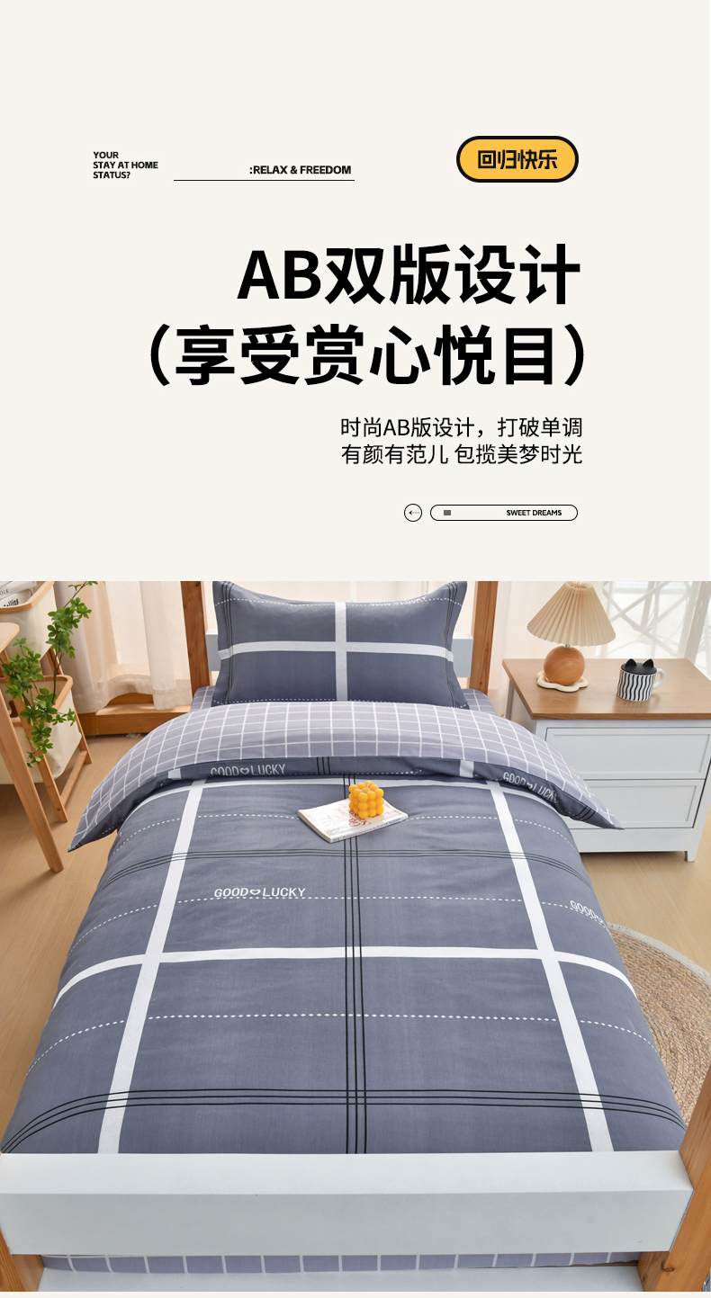 当前位置: 91家纺网 > 商品网购 > 床品套件 > 四件套 > 全棉普通四件套 > 乐旗家纺 2025新款全棉13372印花学生上下铺套件宿舍三件套 校园风格