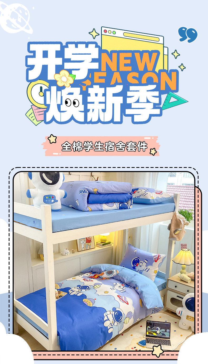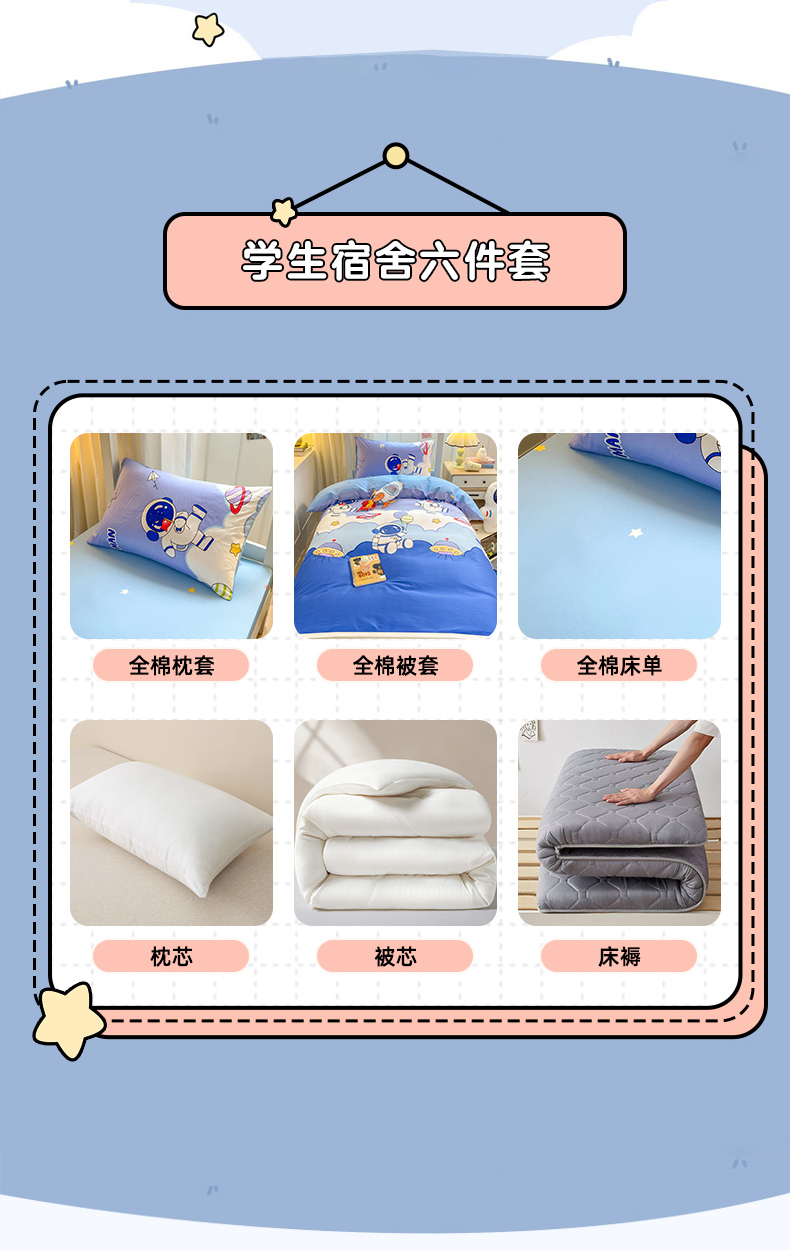 当前位置: 91家纺网 > 商品网购 > 床品套件 > 四件套 > 全棉普通四件套 > 博雅 2025新款全棉纯棉学生宿舍上下铺六件套-宇航员系列 太空漫步