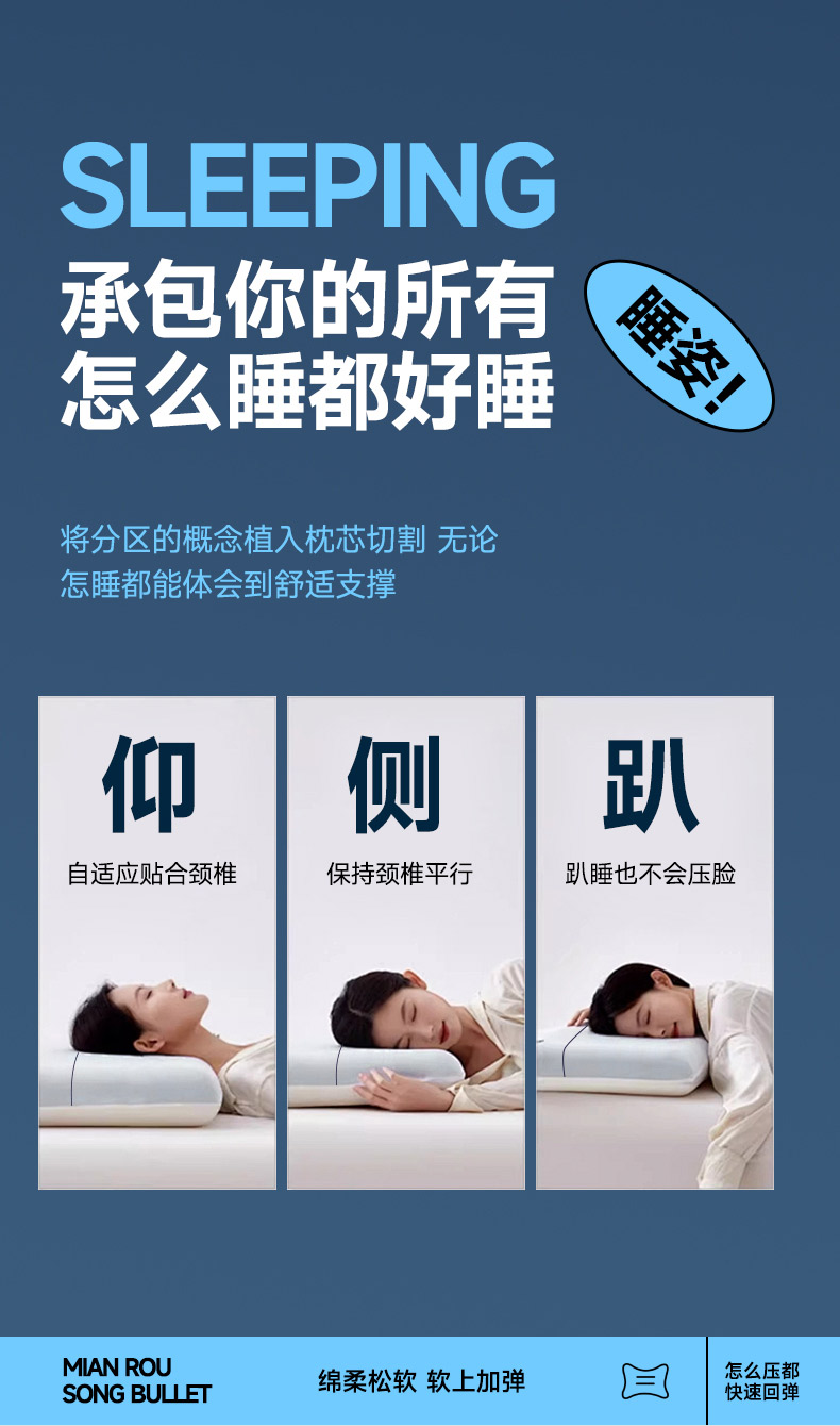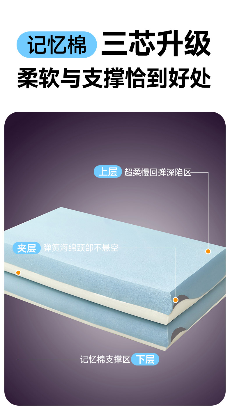 当前位置: 91家纺网 > 商品网购 > 枕头/枕芯/保健枕/颈椎枕 > 普通枕芯 > 蝶飞舞 2025新款pro二代零压力慢回弹 三拼记忆枕 蓝白灰 70*42*12cm