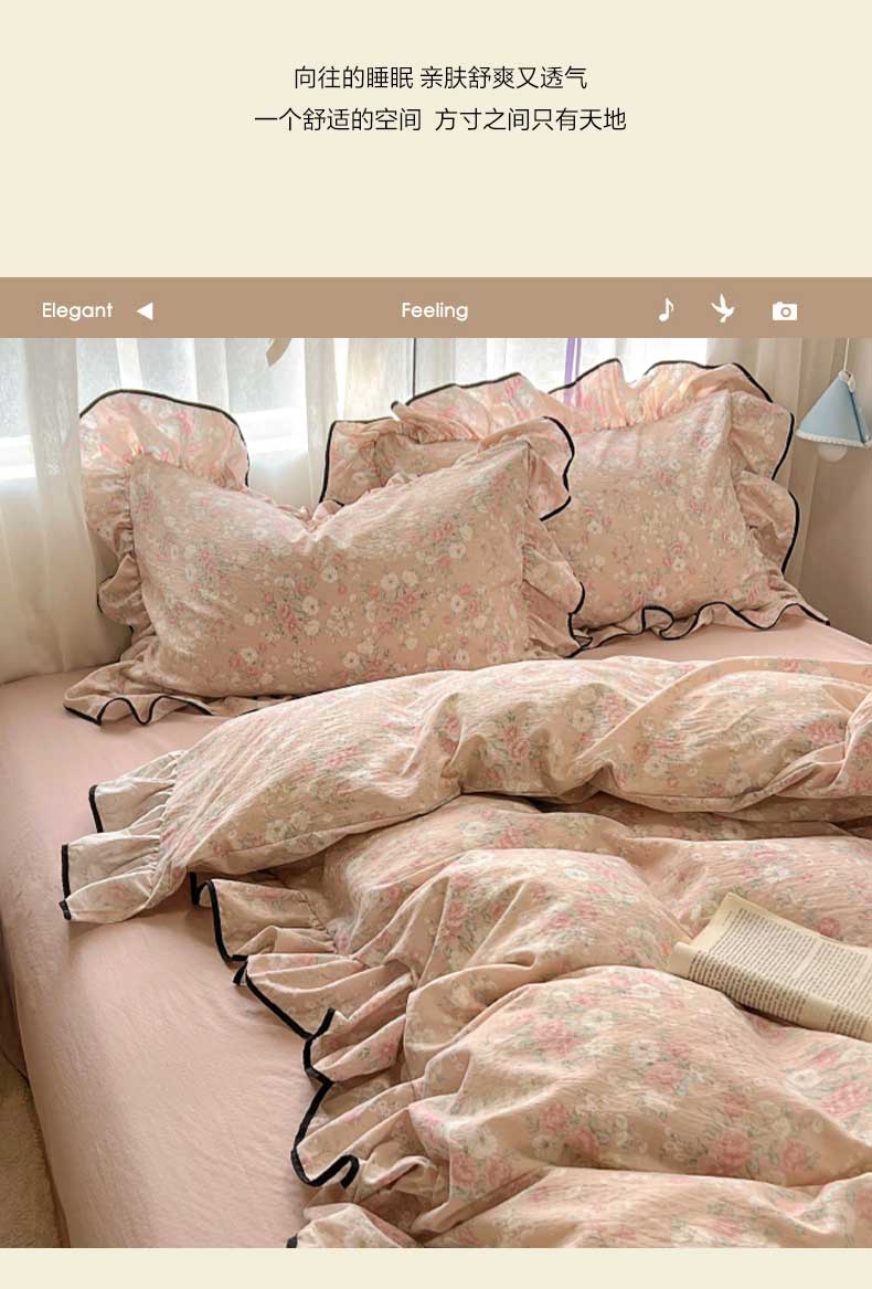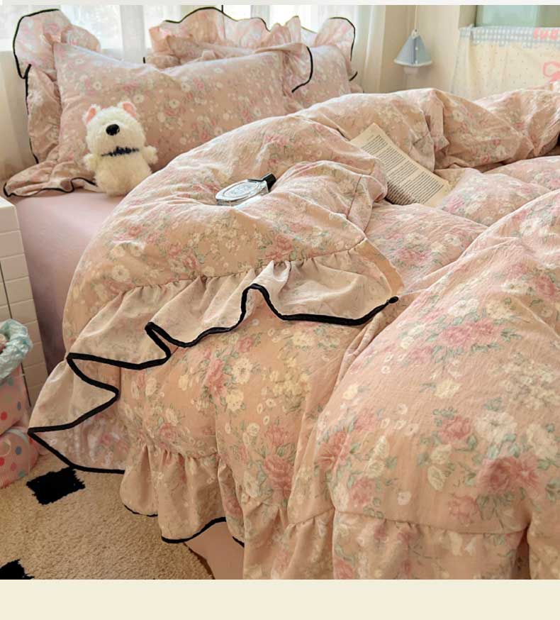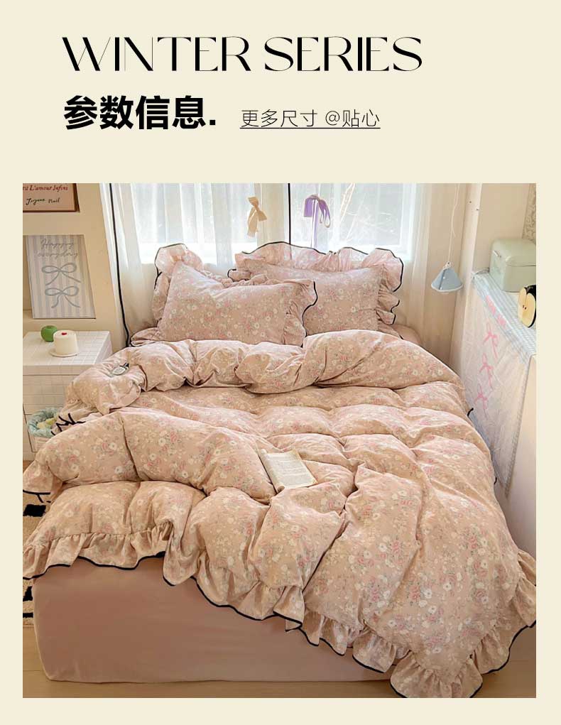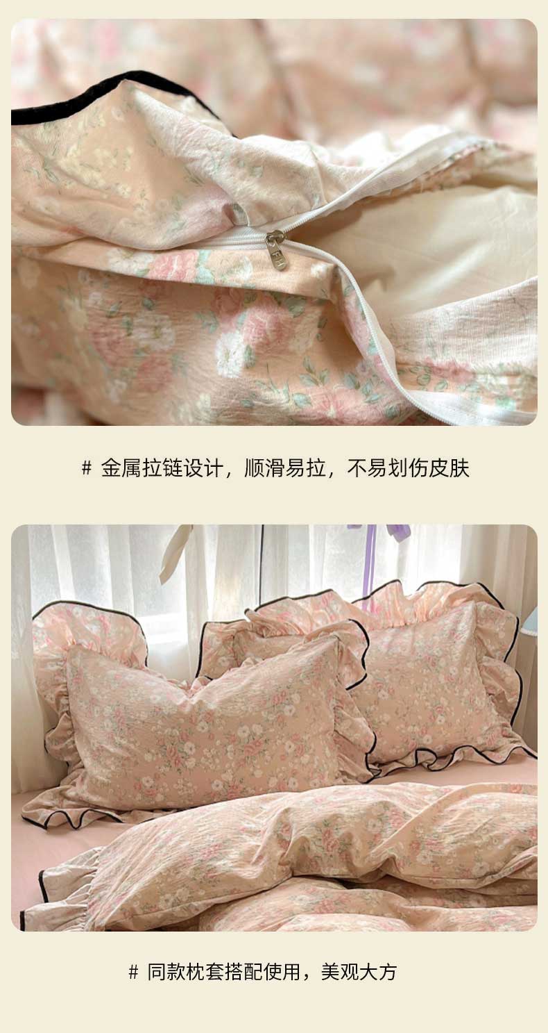 当前位置: 91家纺网 > 商品网购 > 床品套件 > 四件套 > 其它四件套 > 繁花家居 2025新款学生季韩式云感针织棉大花边木耳边四件套 秋日恋歌