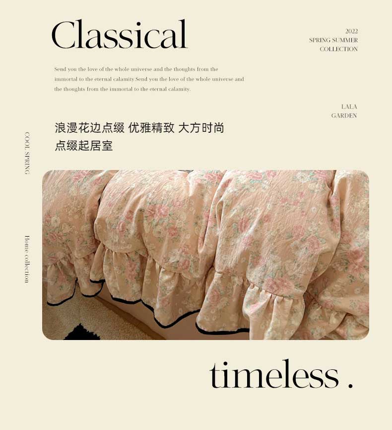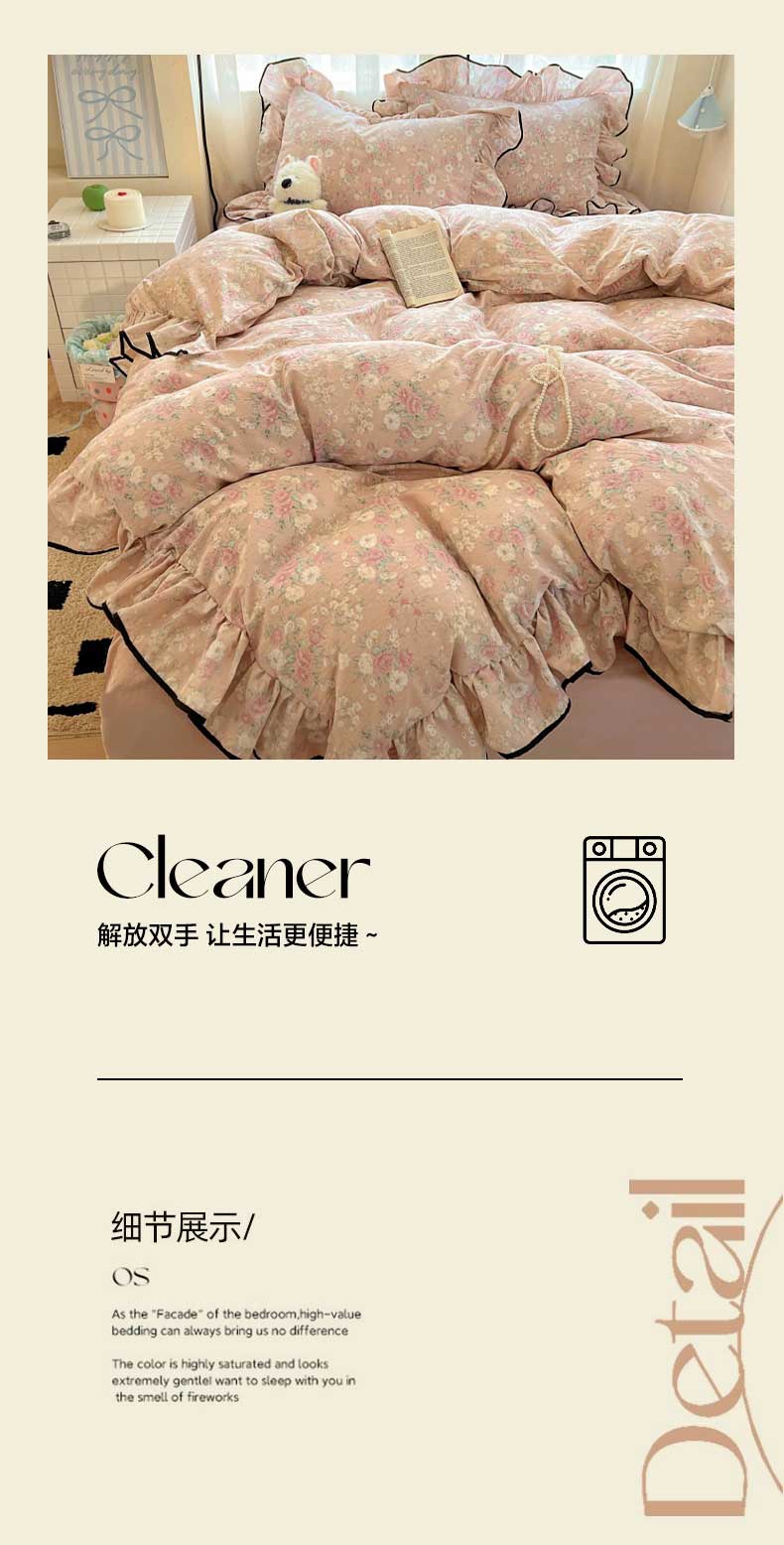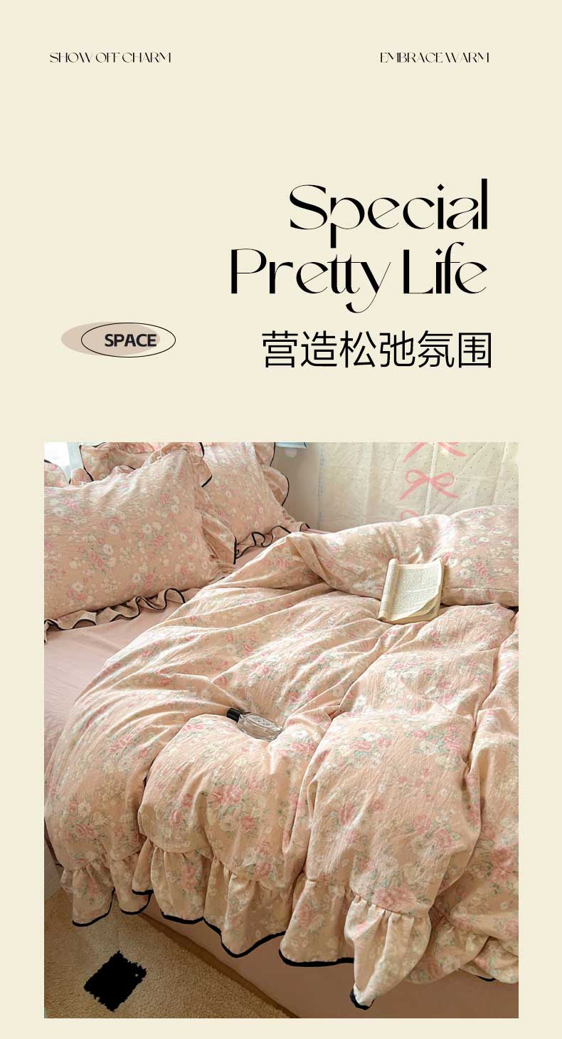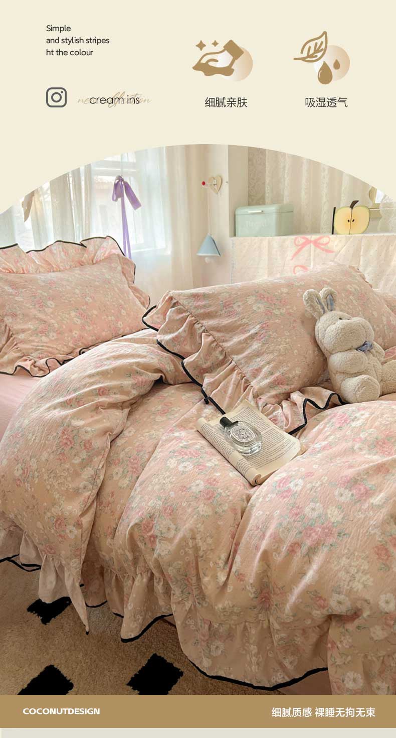 当前位置: 91家纺网 > 商品网购 > 床品套件 > 四件套 > 其它四件套 > 繁花家居 2025新款学生季韩式云感针织棉大花边木耳边四件套 秋日恋歌