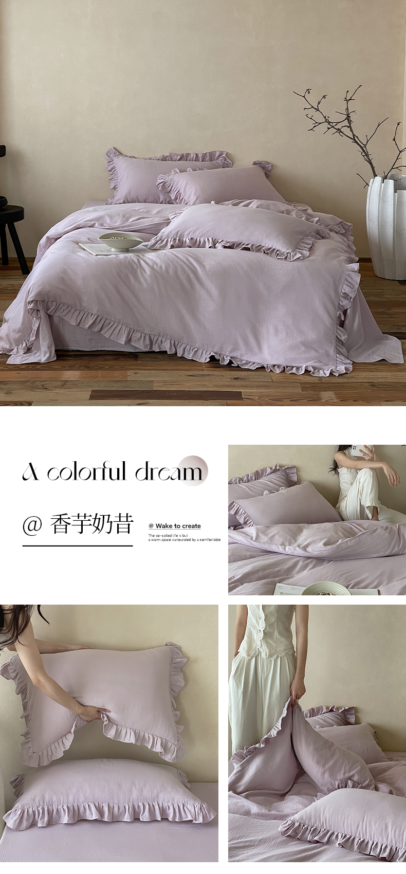 商品名称:三味舒屋2025新款花边美学-全棉双层纱四件套 香芋奶昔
