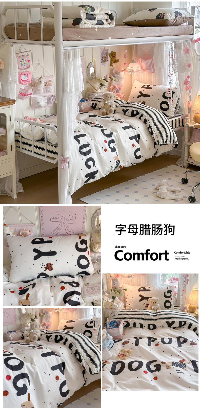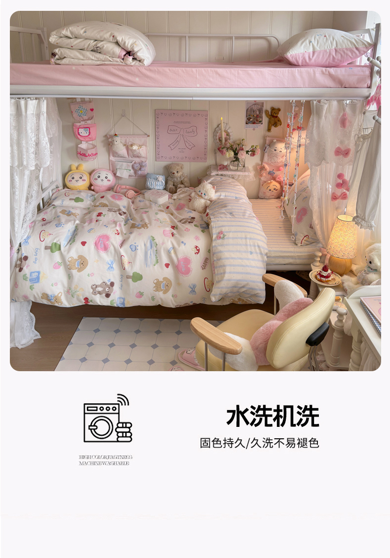 商品名称:Sweet dreams甜梦 2025新款学生床全棉纯棉三套件学生三件套宿舍三件套上下铺三件套 蛋糕小狗