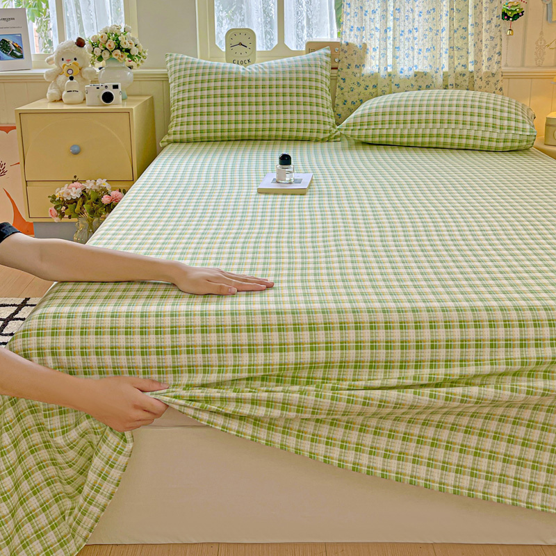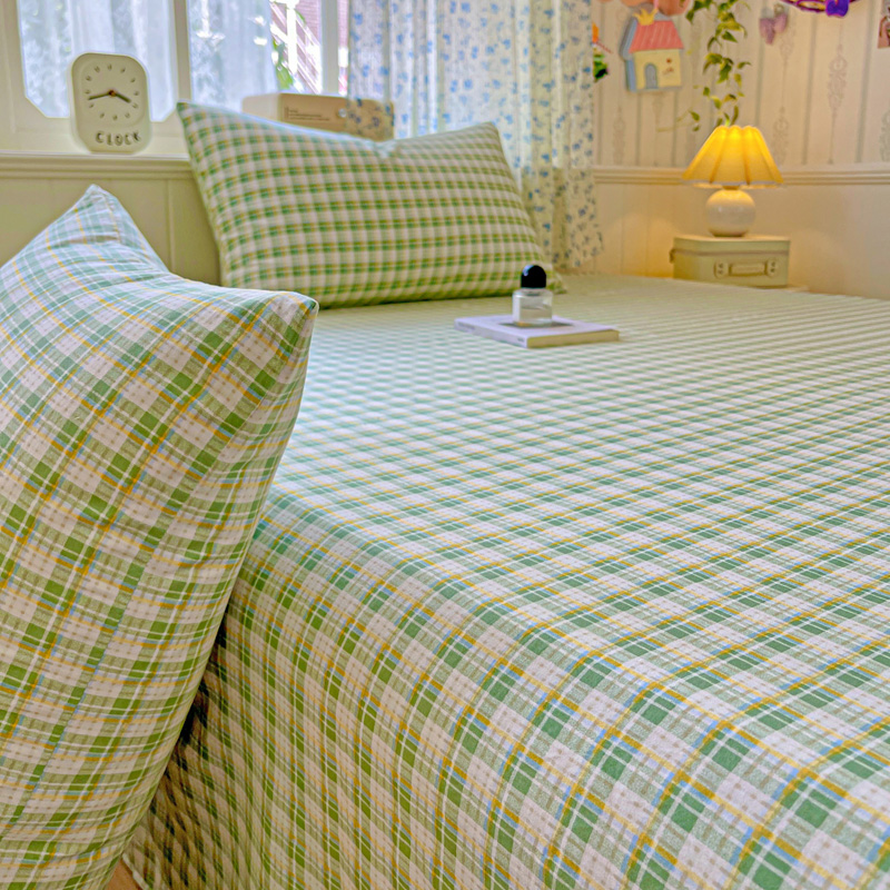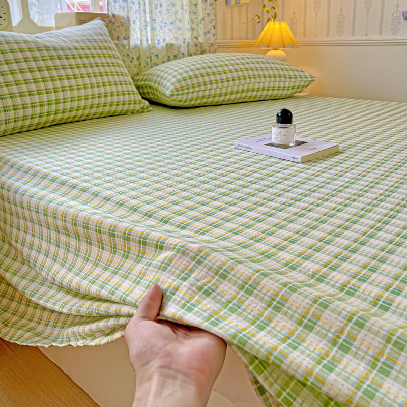 (总)繁花家居 2025软爆高克重水洗棉床单床笠单件 学生季跑量款,彩虹条,粉方格,绿方格,奶盖波波,苹果绿格,紫方格,组合图仅供展示