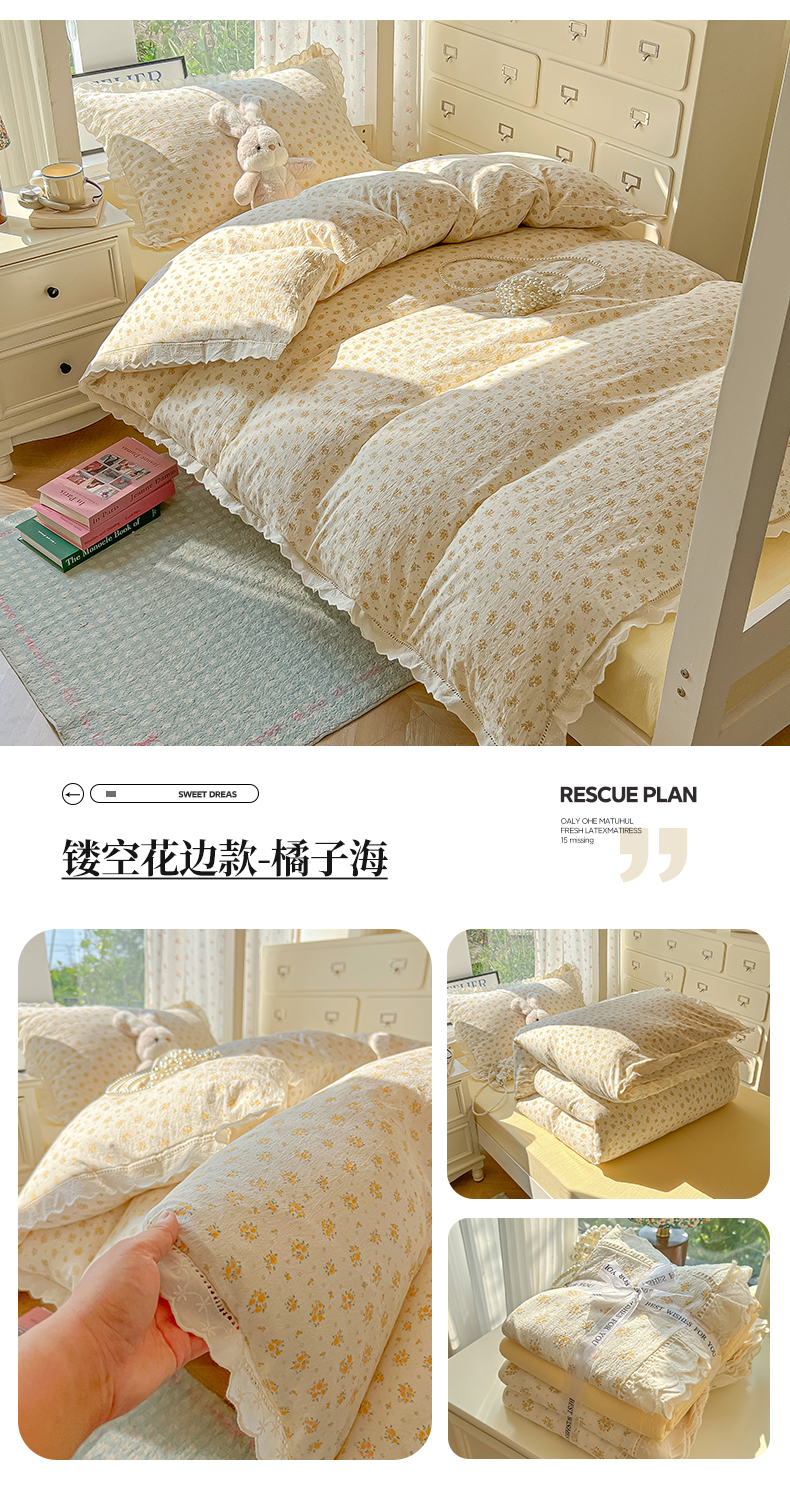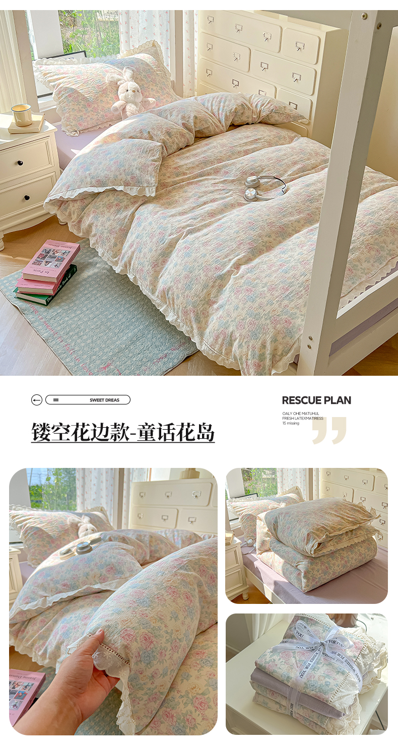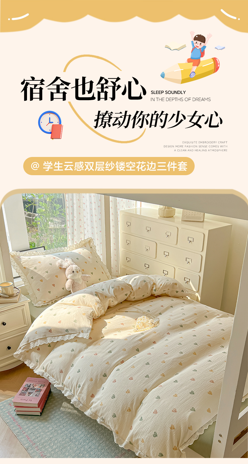 当前位置: 91家纺网 > 商品网购 > 床品套件 > 三件套 > 韩巢家纺 2025新款学生宿舍三件套上下铺学生季开学季床品 镂空花边款-浪漫世界