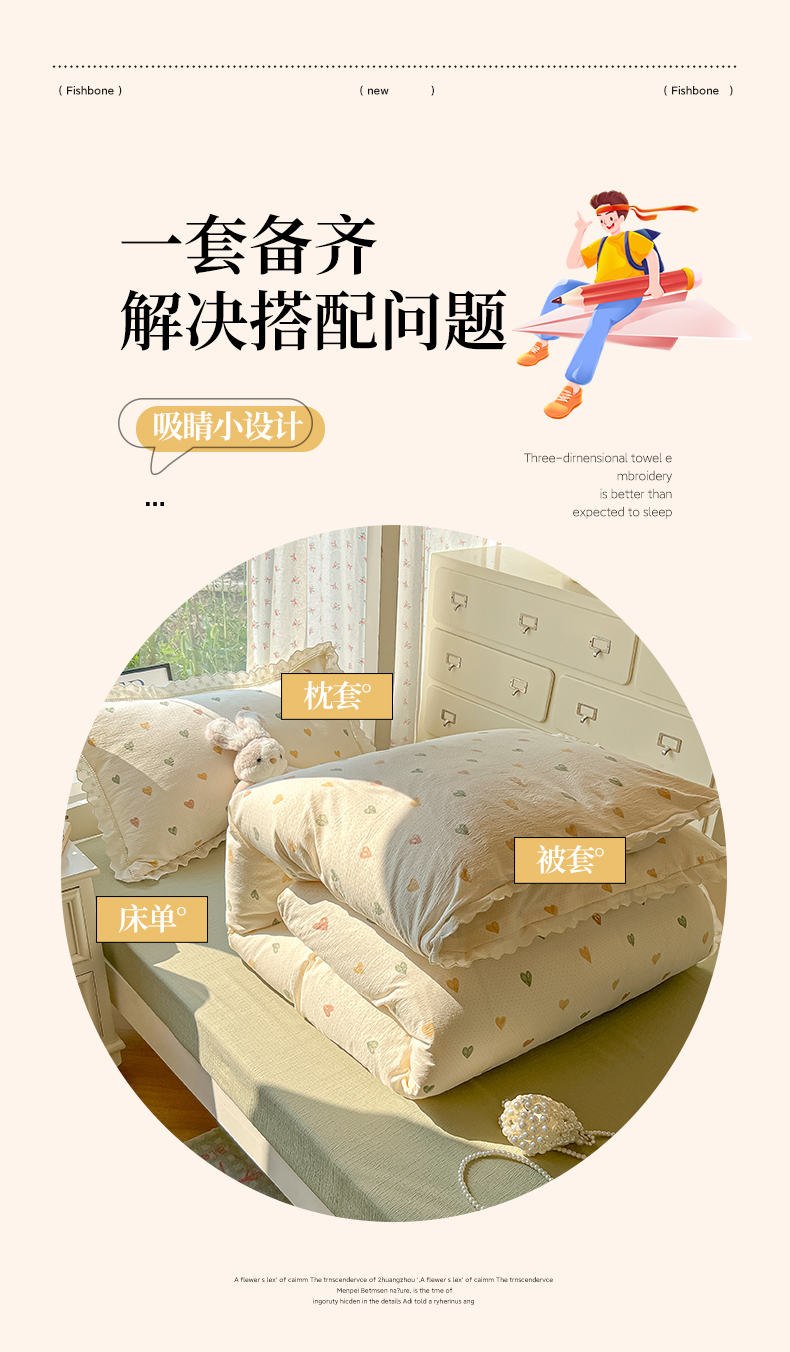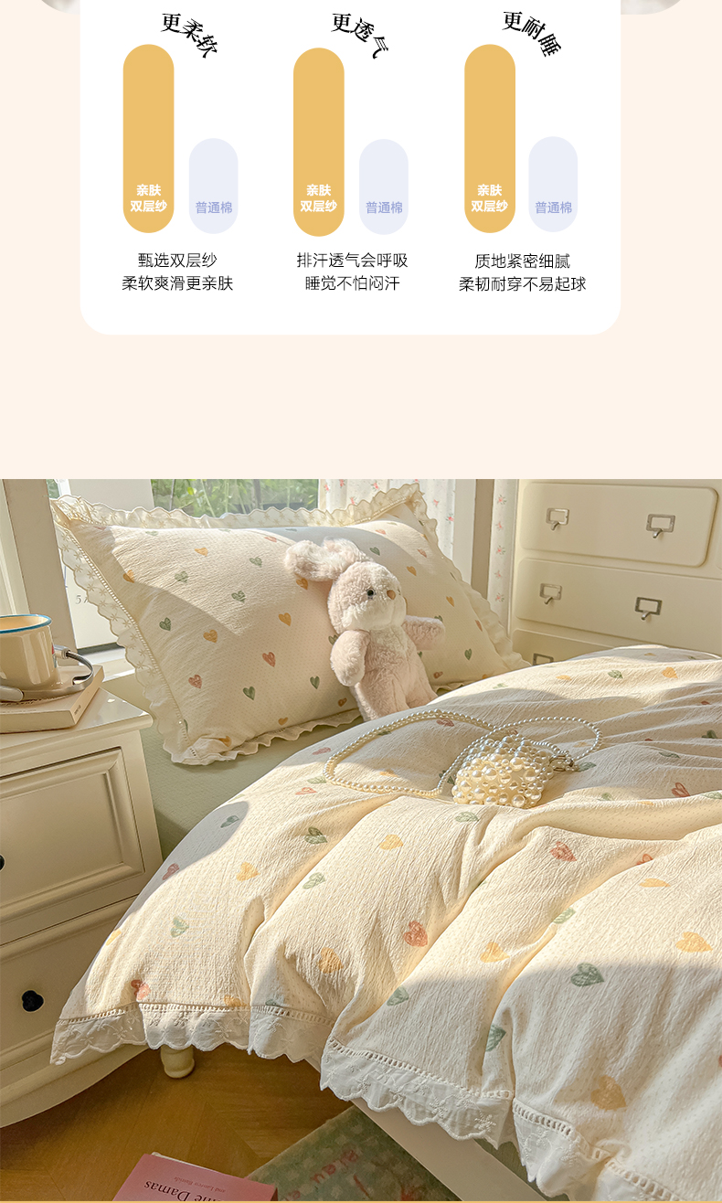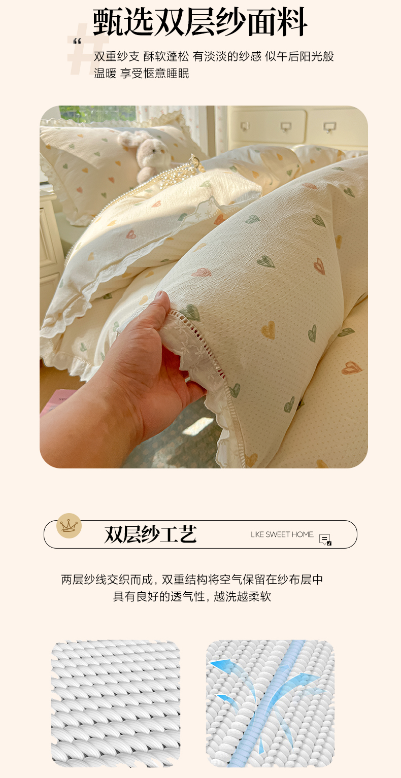 当前位置: 91家纺网 > 商品网购 > 床品套件 > 三件套 > 韩巢家纺 2025新款学生宿舍三件套上下铺学生季开学季床品 镂空花边款-浪漫世界