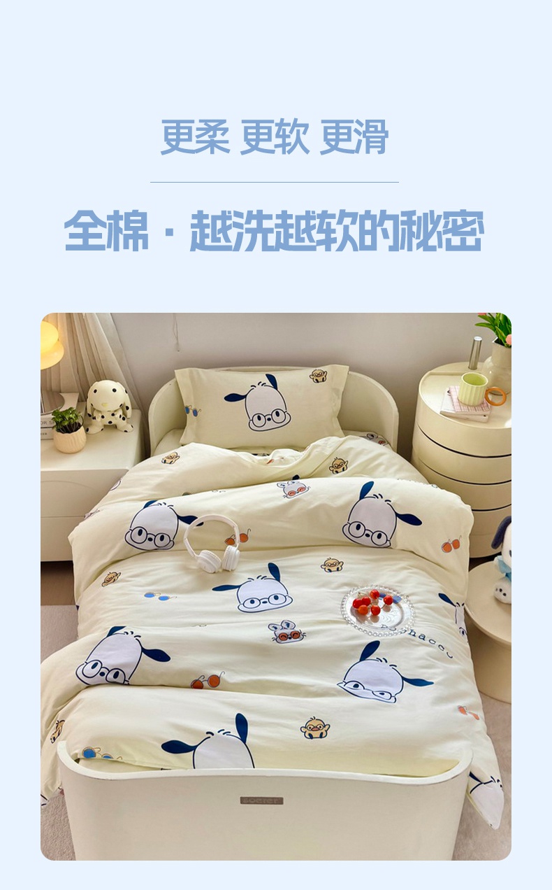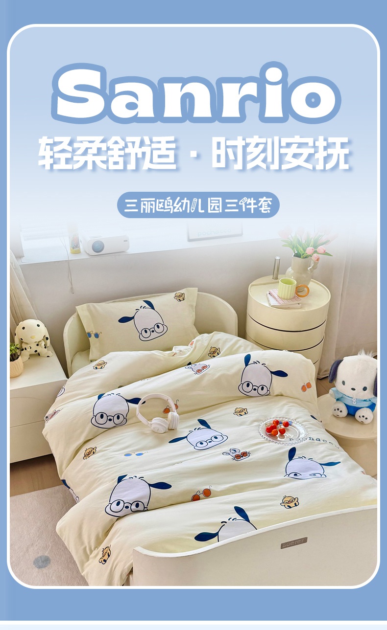 蘭菲家纺 2025新款学生季全棉幼儿园三丽鸥三件套小版系列 眼镜狗.米