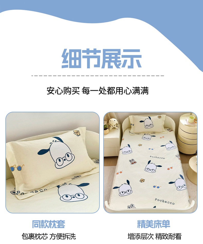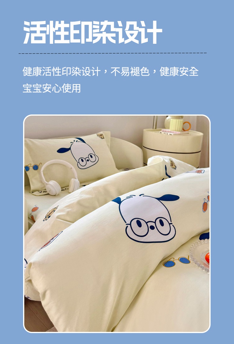 商品名称:蘭菲家纺 2025新款学生季全棉幼儿园三丽鸥三件套小版系列 眼镜狗.米