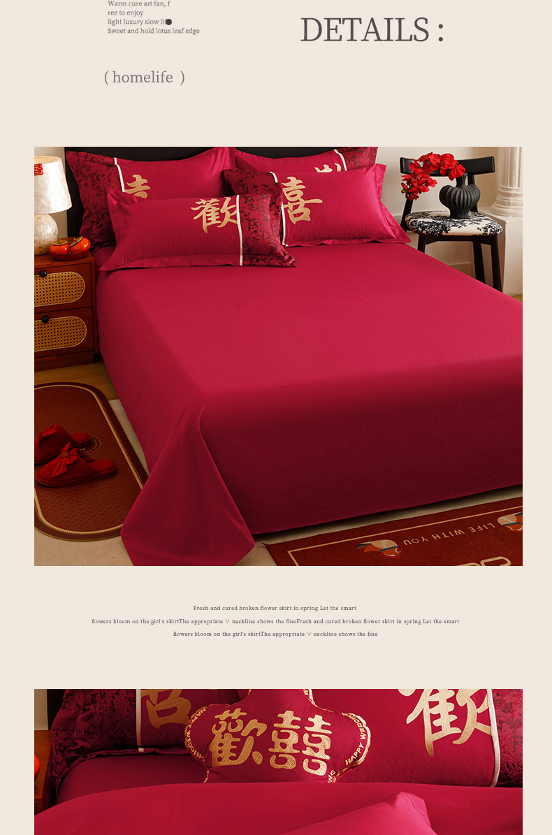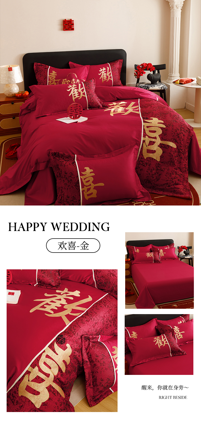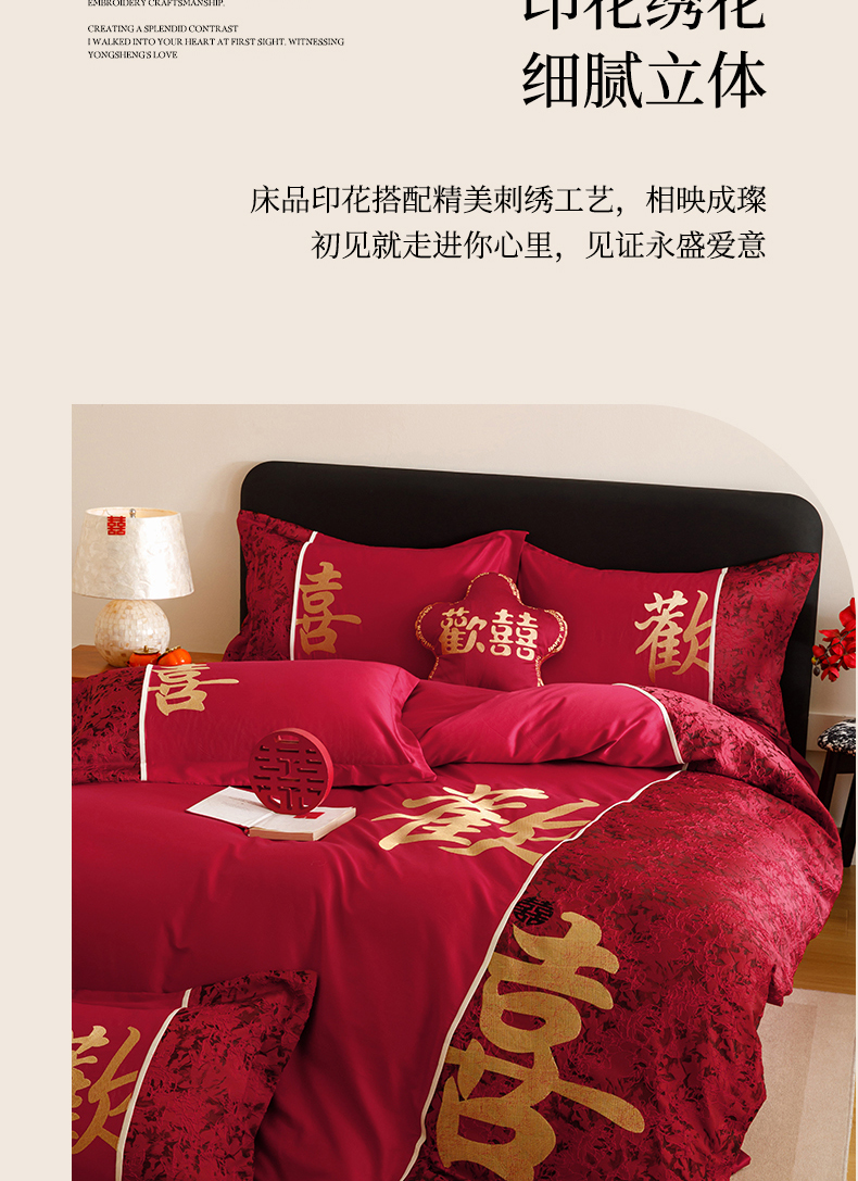 (总)苏源家居 2025新款 大红婚庆结婚喜庆刺绣轻奢四件套-吾家有喜系列,吾家有喜-红色,吾家有喜-金色