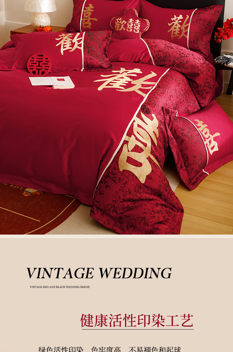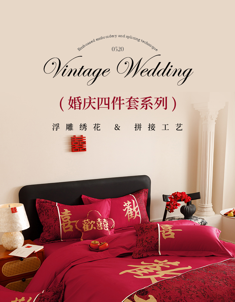 (总)苏源家居 2026新款婚庆大红色刺绣喜字结婚四件套,暗香-红,暗香-金