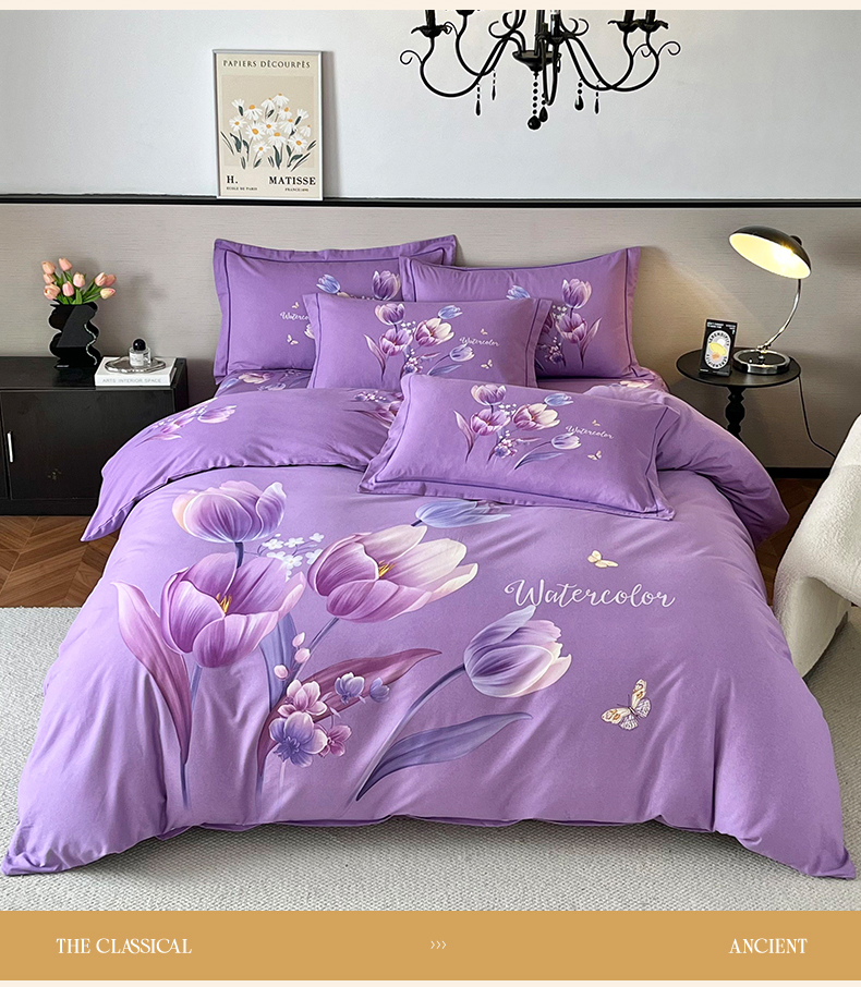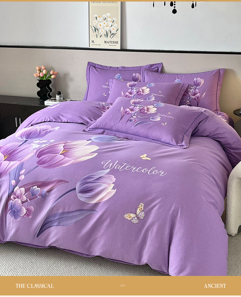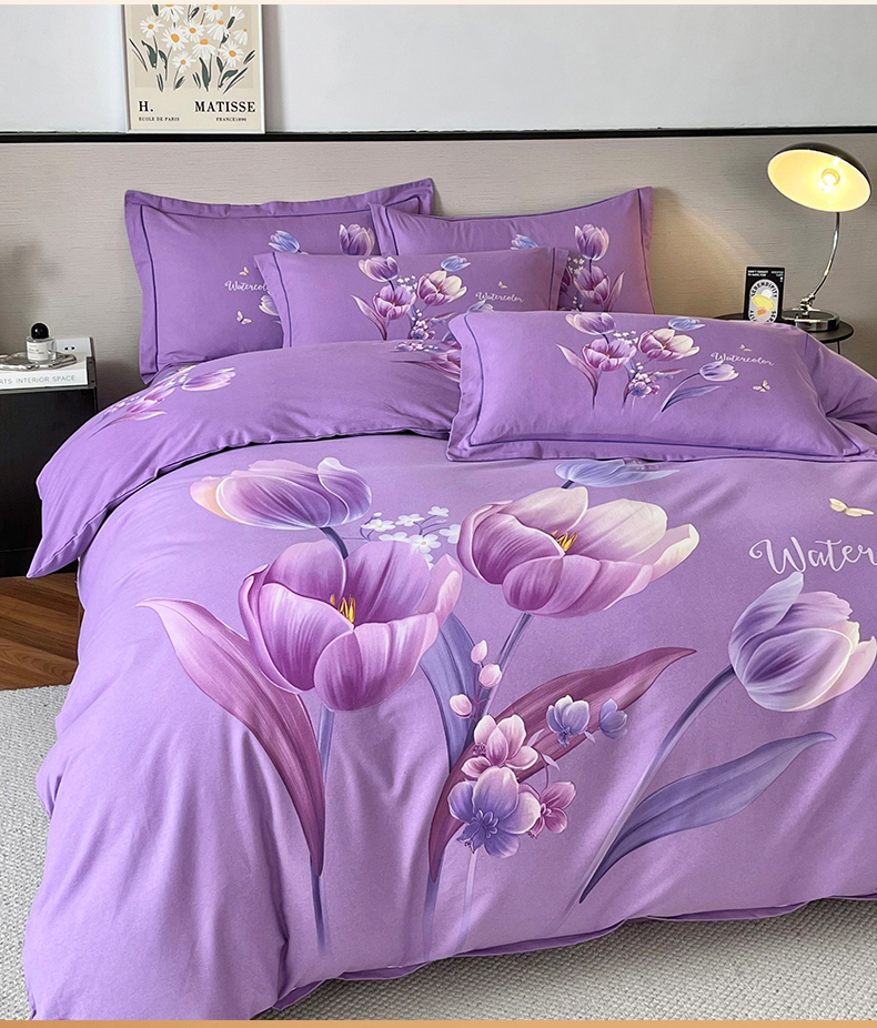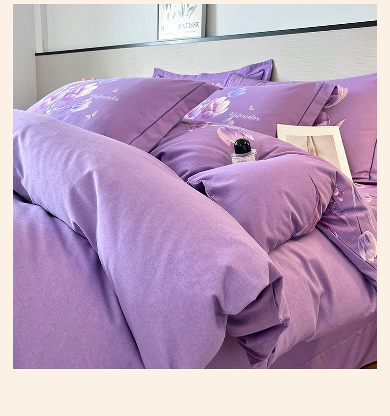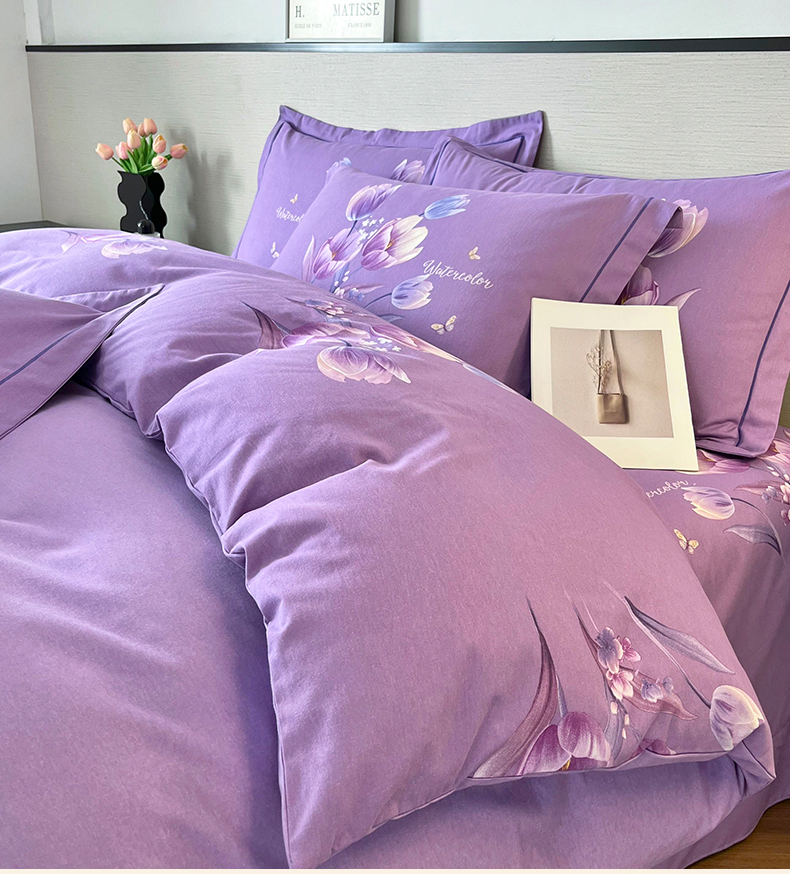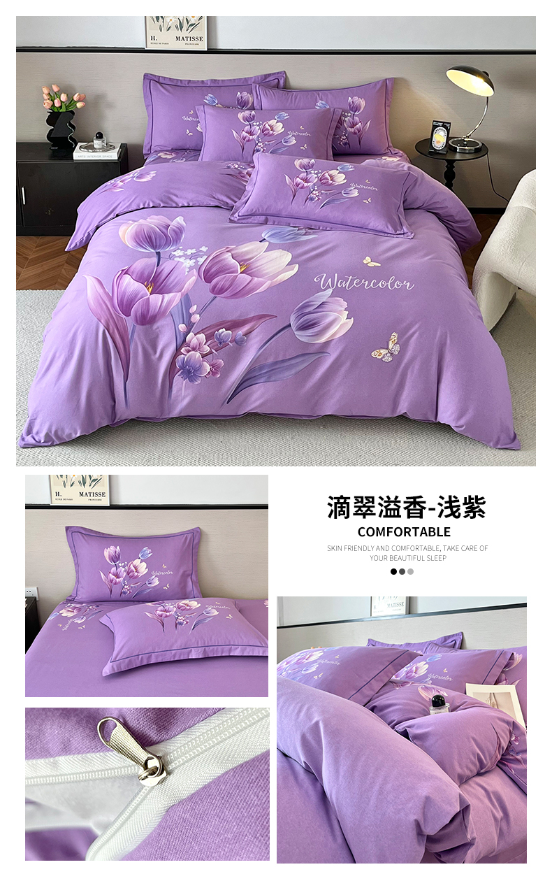 曼秀琳 2025秋冬新款全棉磨毛印花四件套 滴翠溢香-浅紫