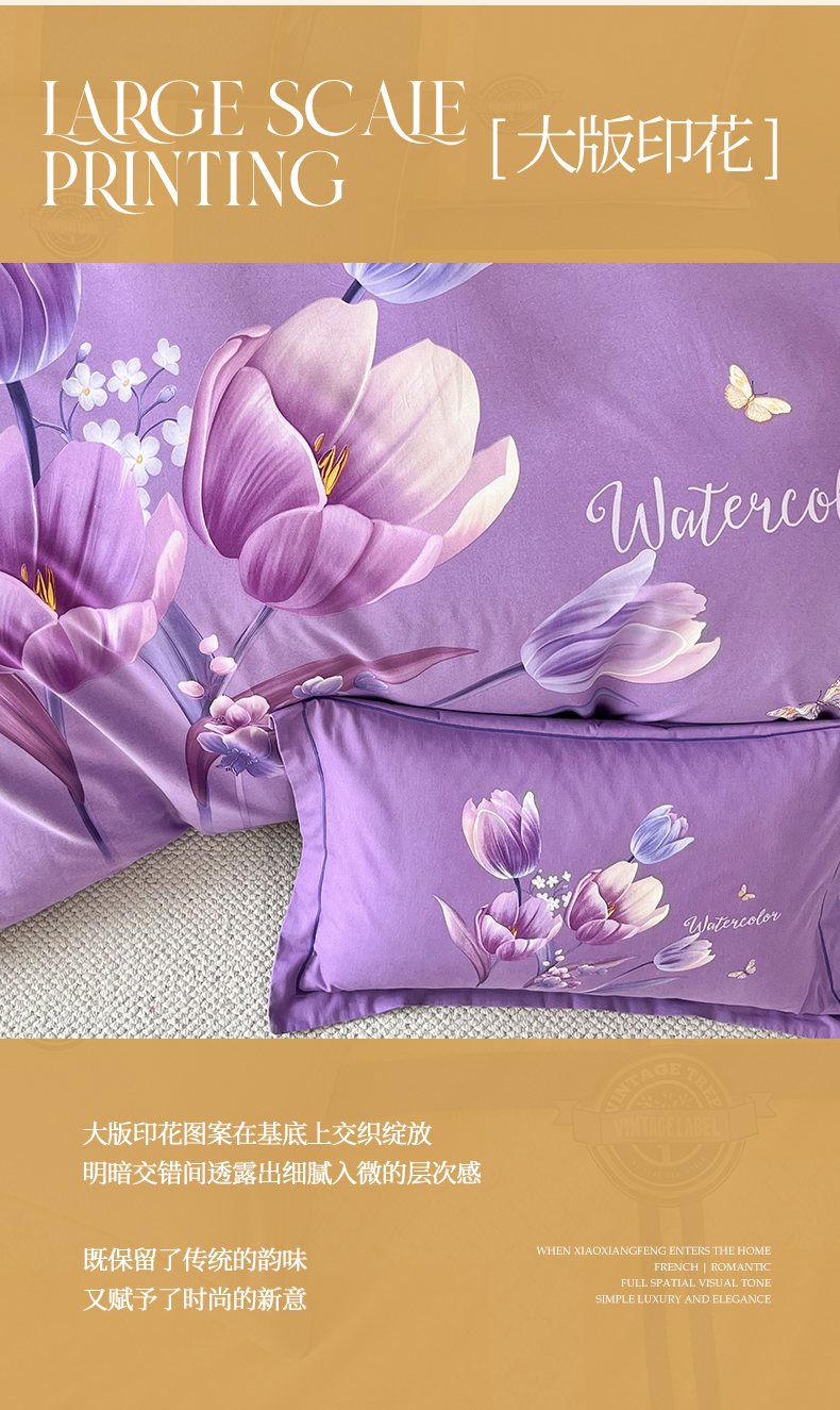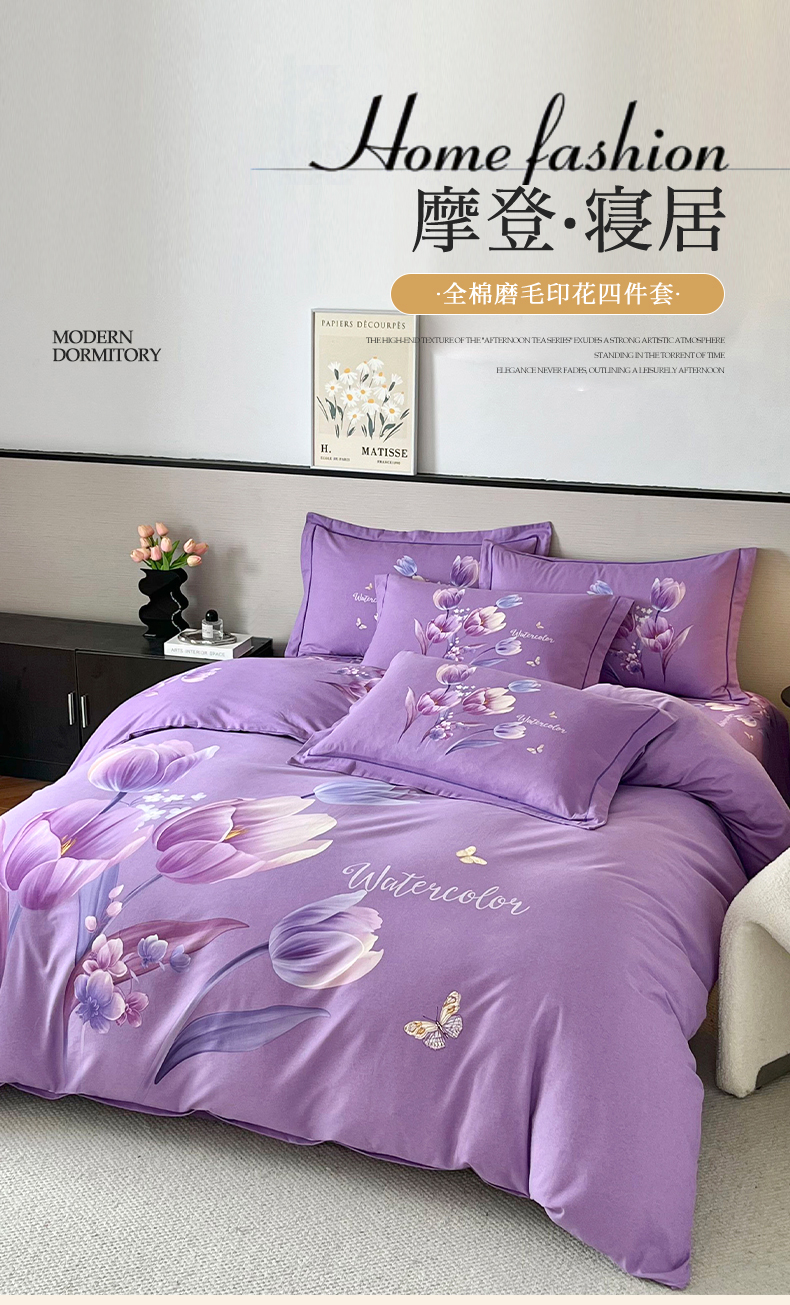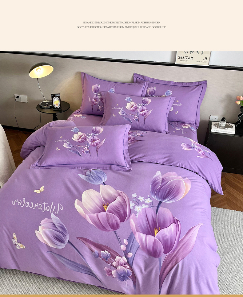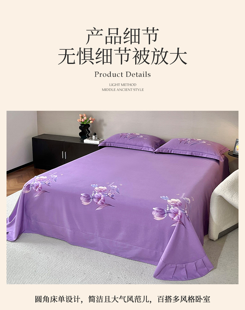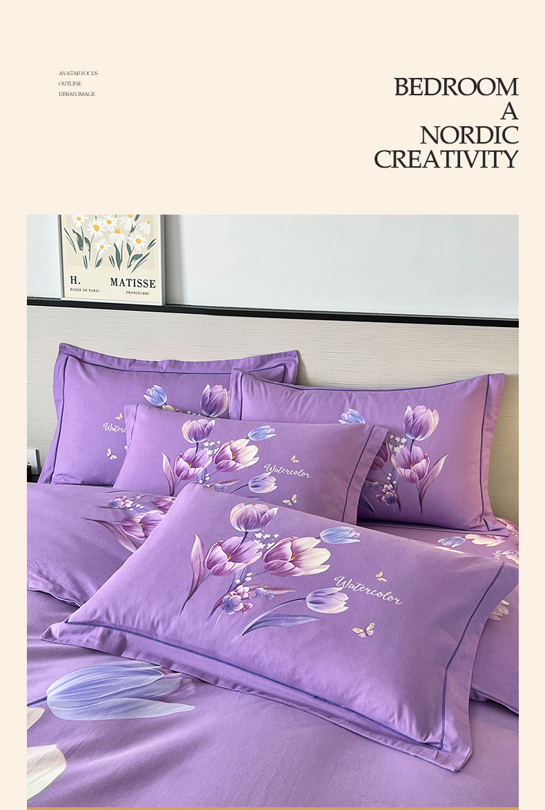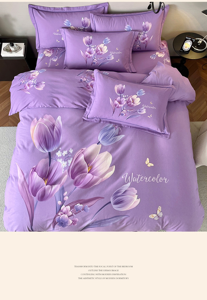 曼秀琳 2025秋冬新款全棉磨毛印花四件套 滴翠溢香-浅紫