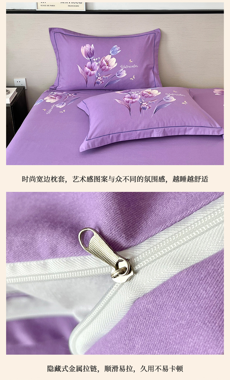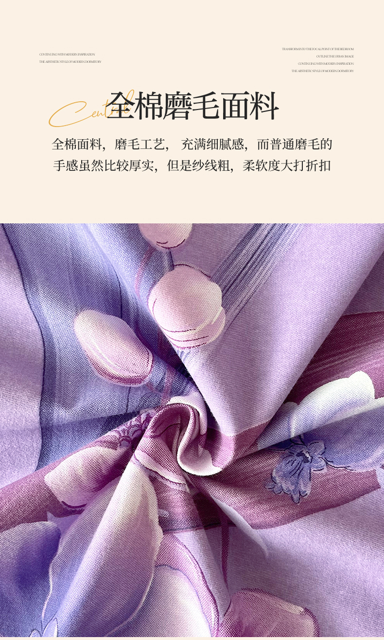 商品名称:曼秀琳 2025秋冬新款全棉磨毛印花四件套 滴翠溢香-浅紫