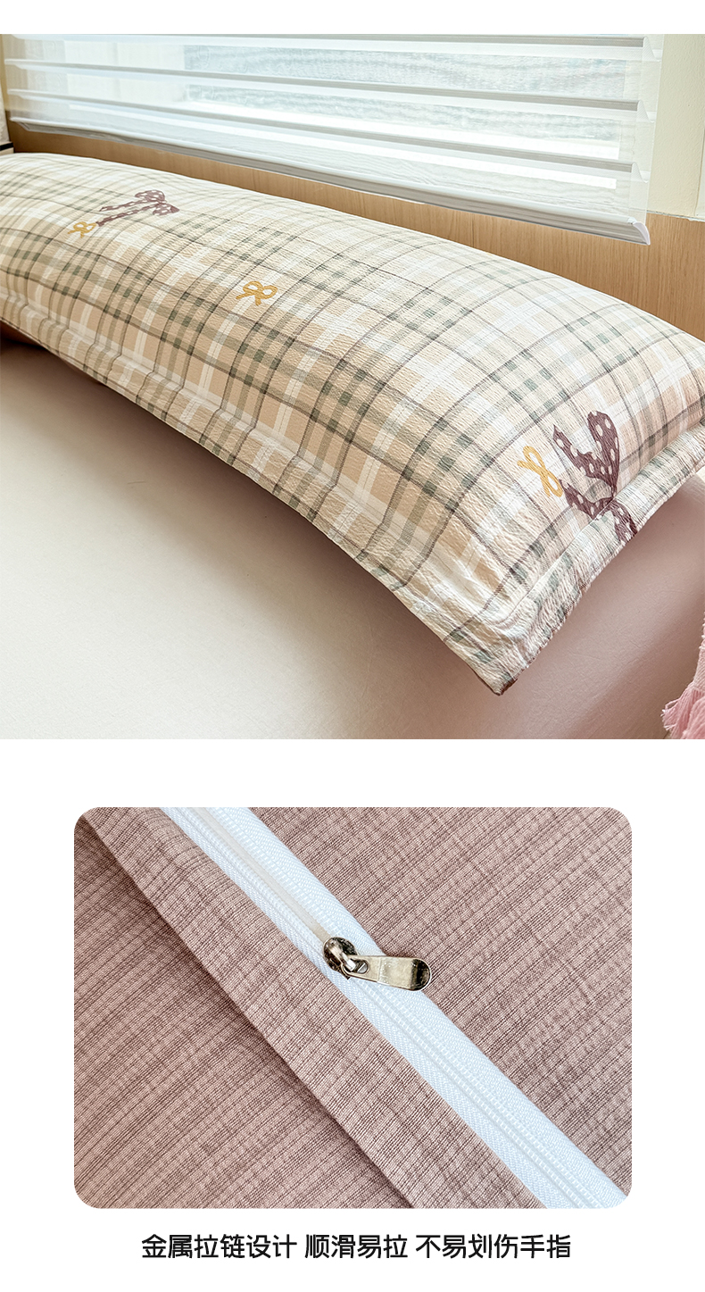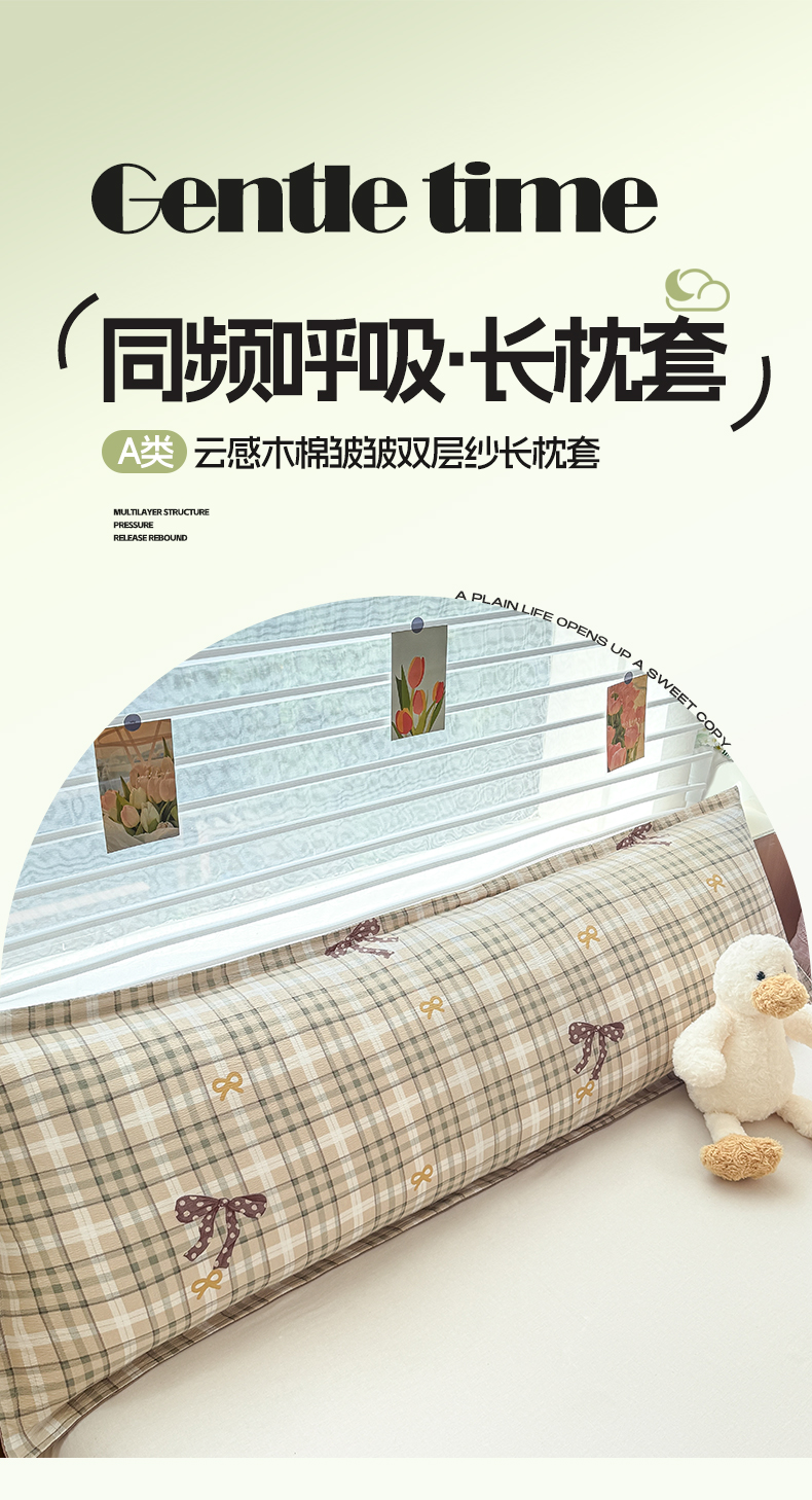 (总)麦田家纺 2025新款云感木棉皱皱双层纱长枕,春意浓,繁花,花颜,开心小熊,腊肠犬,浪漫花语,甜心格,小蓝町,樱桃格,紫韵,纯白