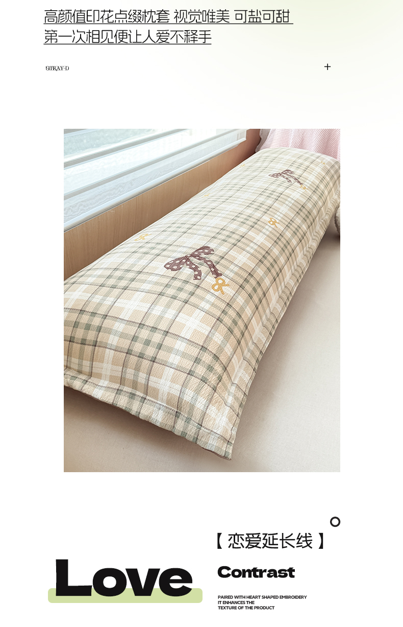 麦田家纺 2025新款云感木棉皱皱双层纱长枕 甜心格