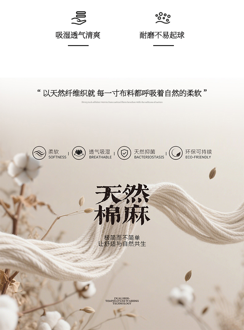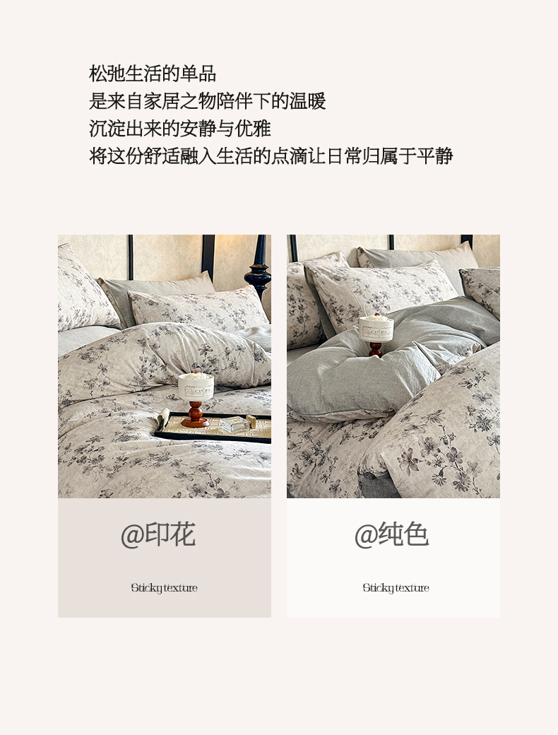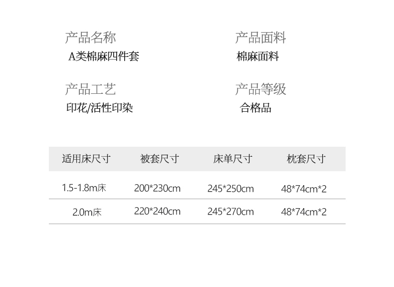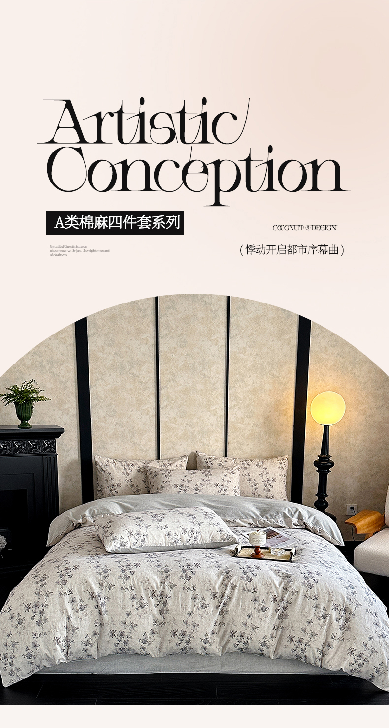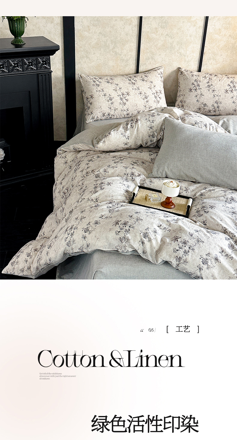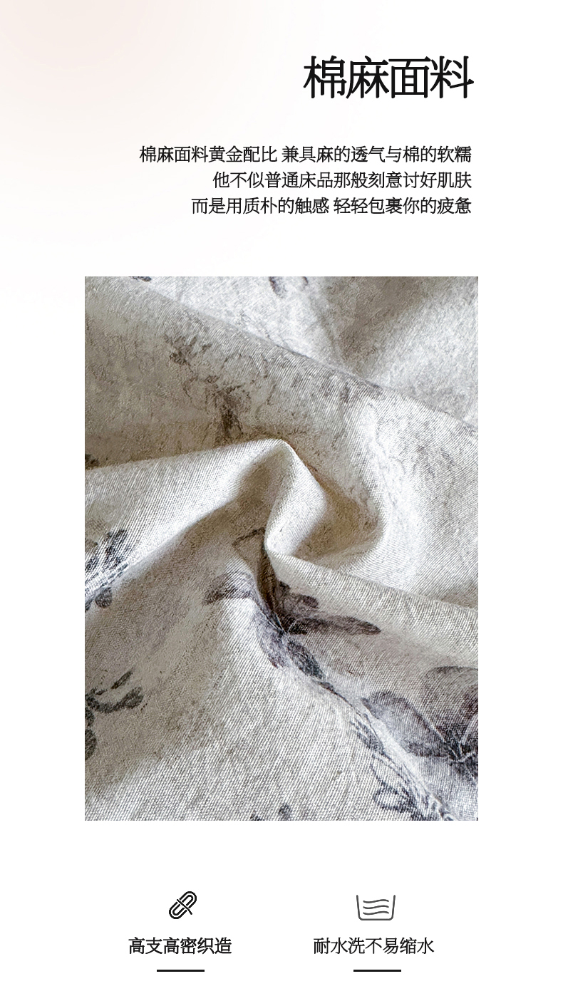 商品名称:麦田家纺 2025新款A类棉麻四件套系列 映霜-灰