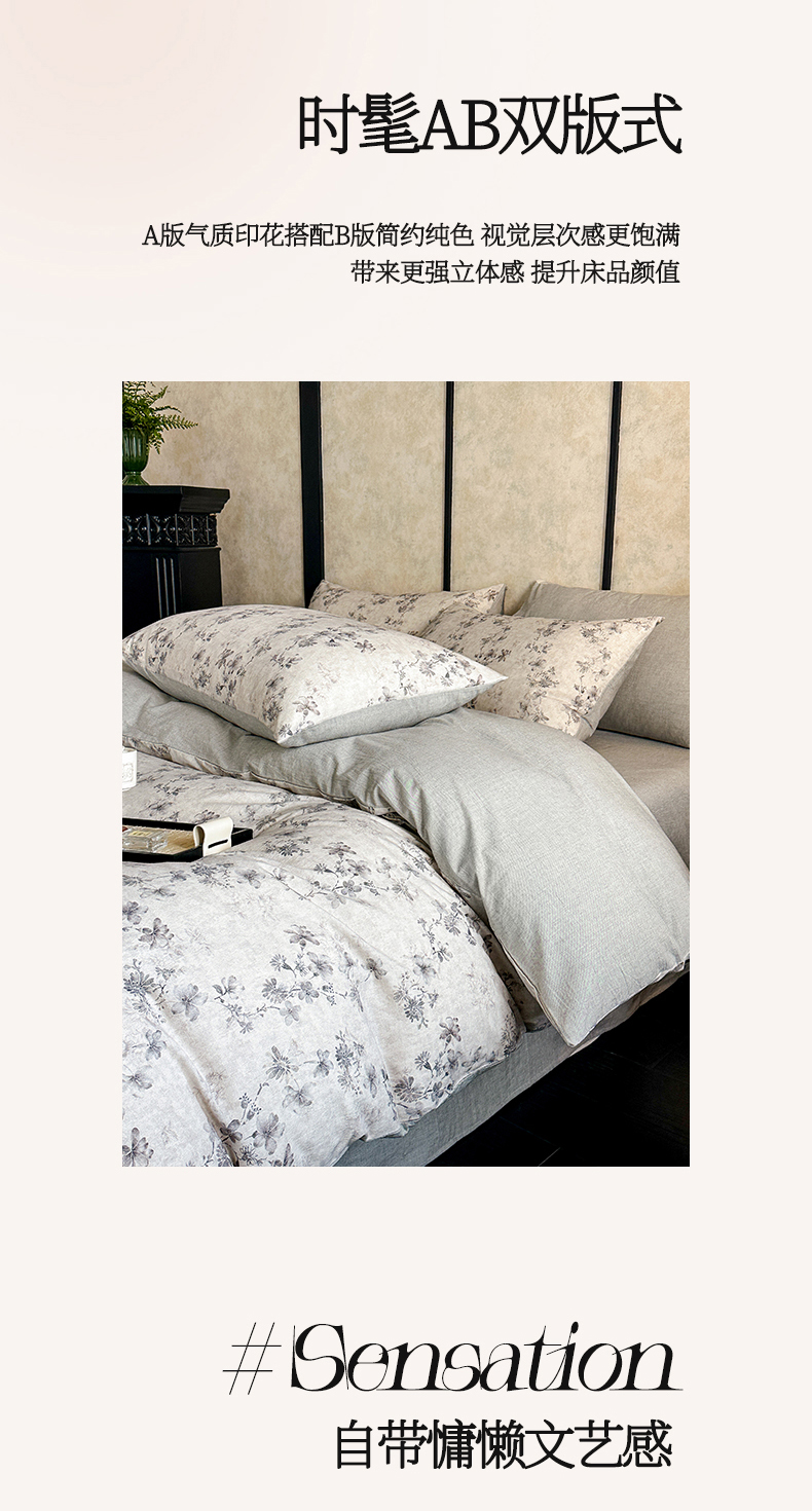 麦田家纺 2025新款A类棉麻四件套系列 映霜-灰