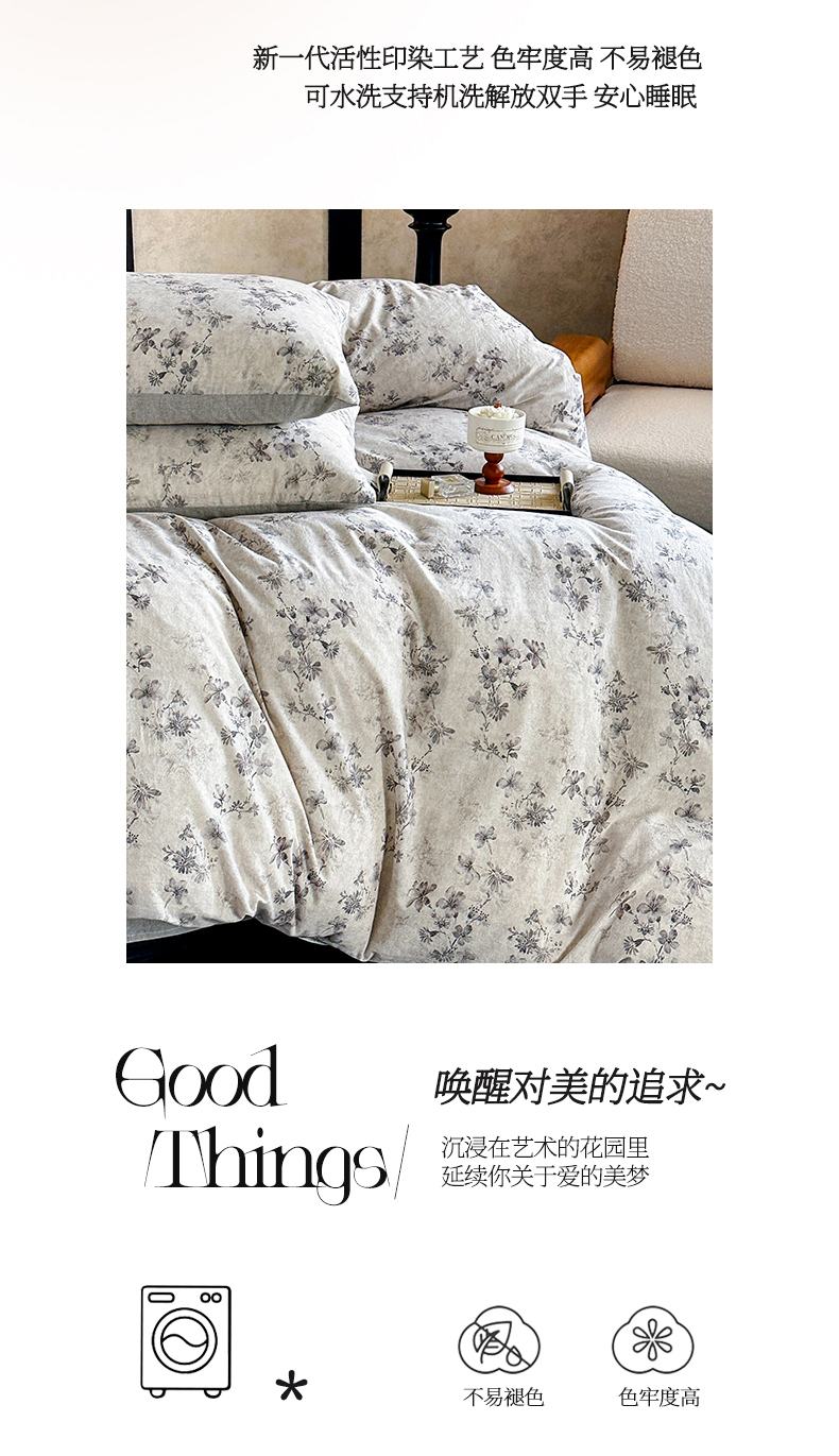 (总)麦田家纺 2025新款A类云感木棉皱皱双层纱印花四件套,春意浓,繁花,花颜,简意,开心小熊,腊肠犬,浪漫花语,免挽星辰,甜心格,小蓝町,樱桃格,紫韵