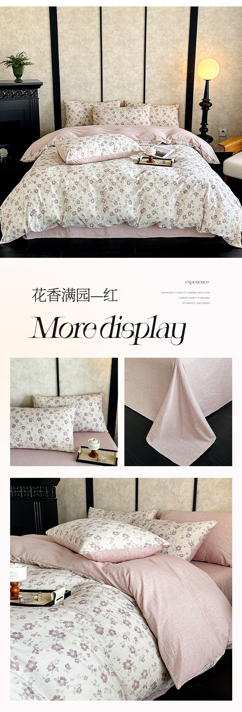 (总)麦田家纺 2025新款A类棉麻四件套系列,花间意境-红,花间意境-咖,花香满园-红,素锦-咖,香叶时代-灰,映霜-灰,映霜-绿
