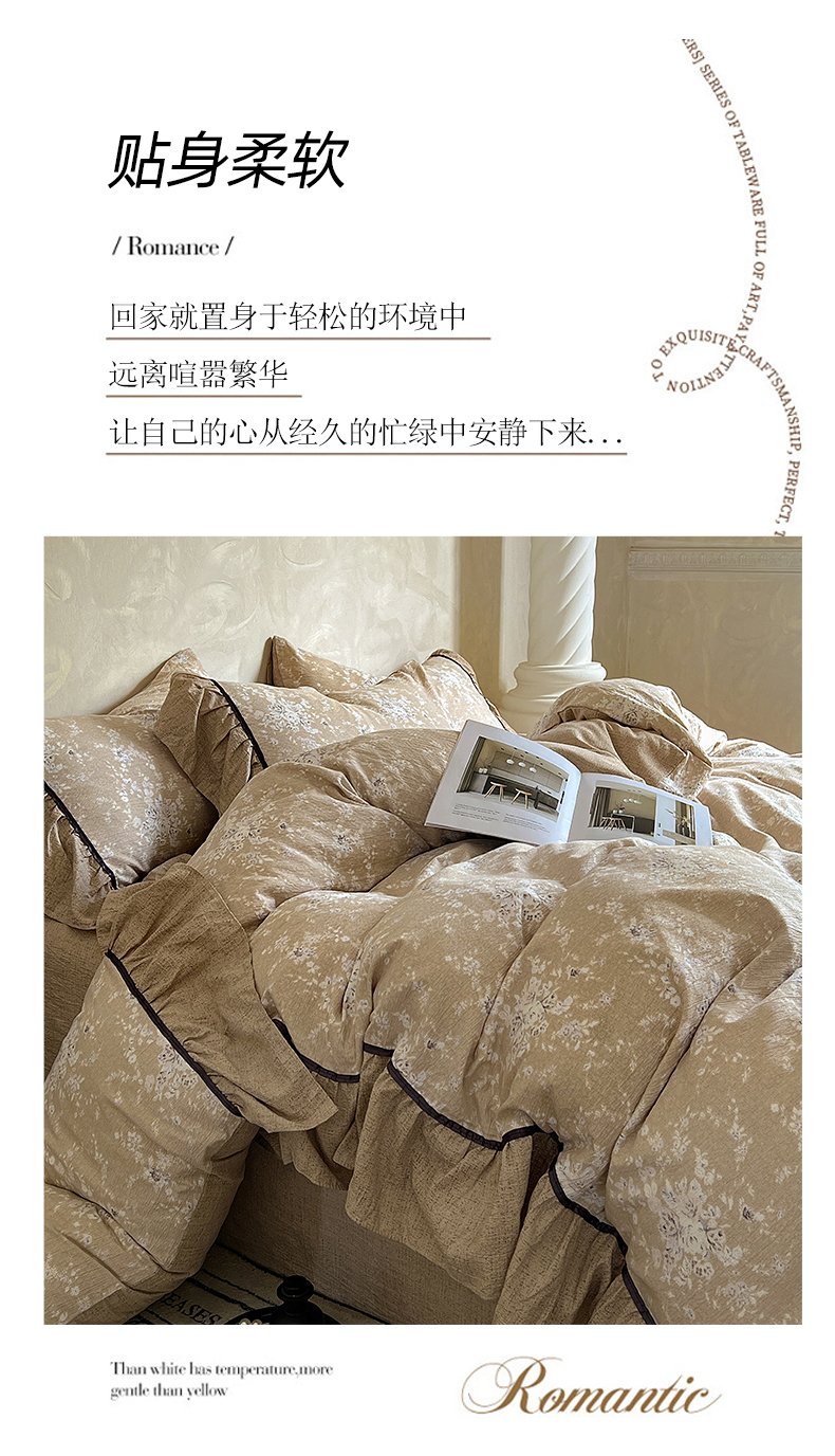 (总)春光里 2025新款亲肤舒适云感双层纱花边四件套 风格二(提供买家秀),澜花,百福蓝,旧梦蔷薇,绿野,梦境织格,摩卡樱桃,桃乐丝,夭夭,莹光,紫风铃