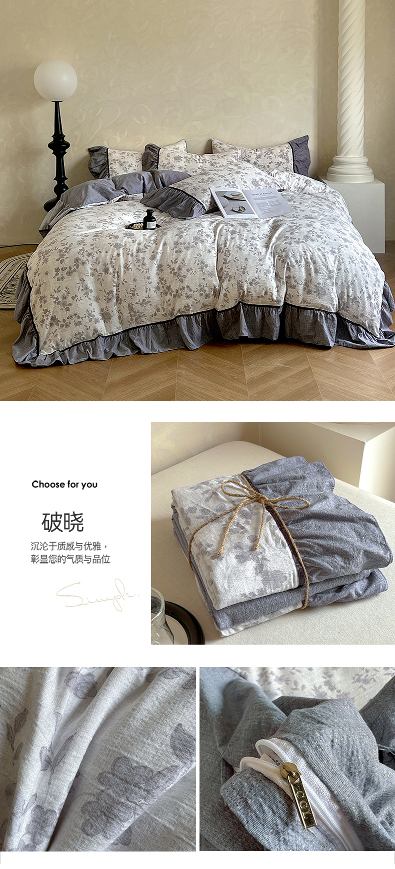 当前位置: 91家纺网 > 商品网购 > 床品套件 > 四件套 > 其它四件套 > 春光里 2025新款高克重亚麻皱皱纱四件套 雾岛