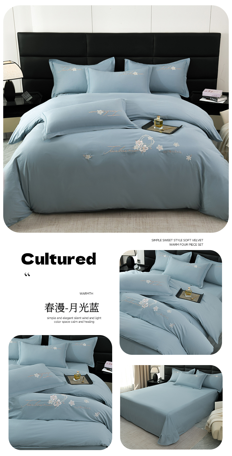 当前位置: 91家纺网 > 商品网购 > 床品套件 > 四件套 > 长绒棉四件套 > U品汇 2025新品40S长绒棉加厚全棉纯棉陶瓷磨毛刺绣花四件套100%棉碳素磨毛 春漫-月光蓝
