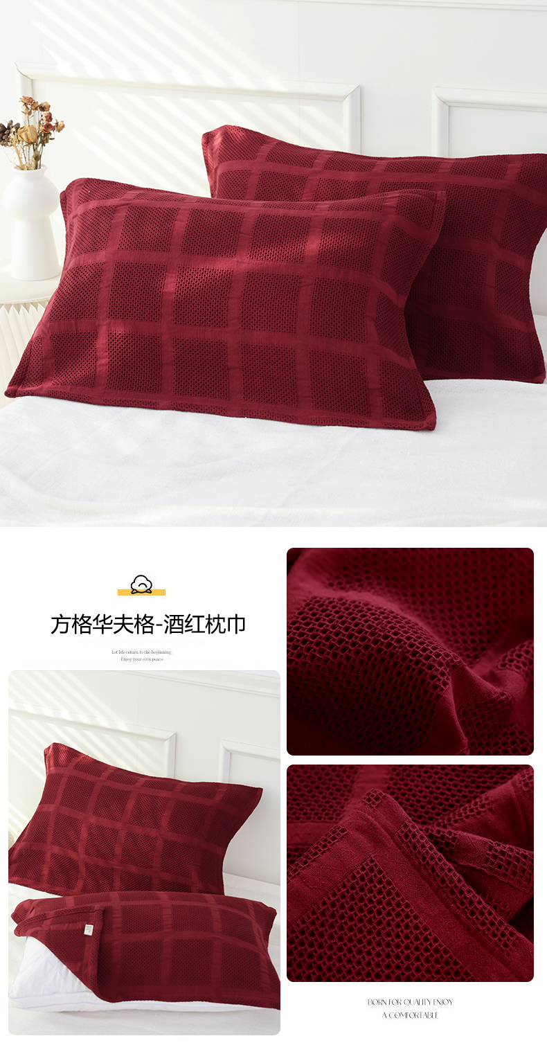 (总)朴尔家纺-毛巾被2025新款新品全棉质朴方格风立体华夫格透气纱布枕巾,方格华夫格-灰枕巾,方格华夫格-酒红枕巾,方格华夫格-米白枕巾,方格华夫格-墨绿枕巾,方格华夫格-浅蓝枕巾,方格华夫格-深蓝枕巾,方格华夫格-紫枕巾