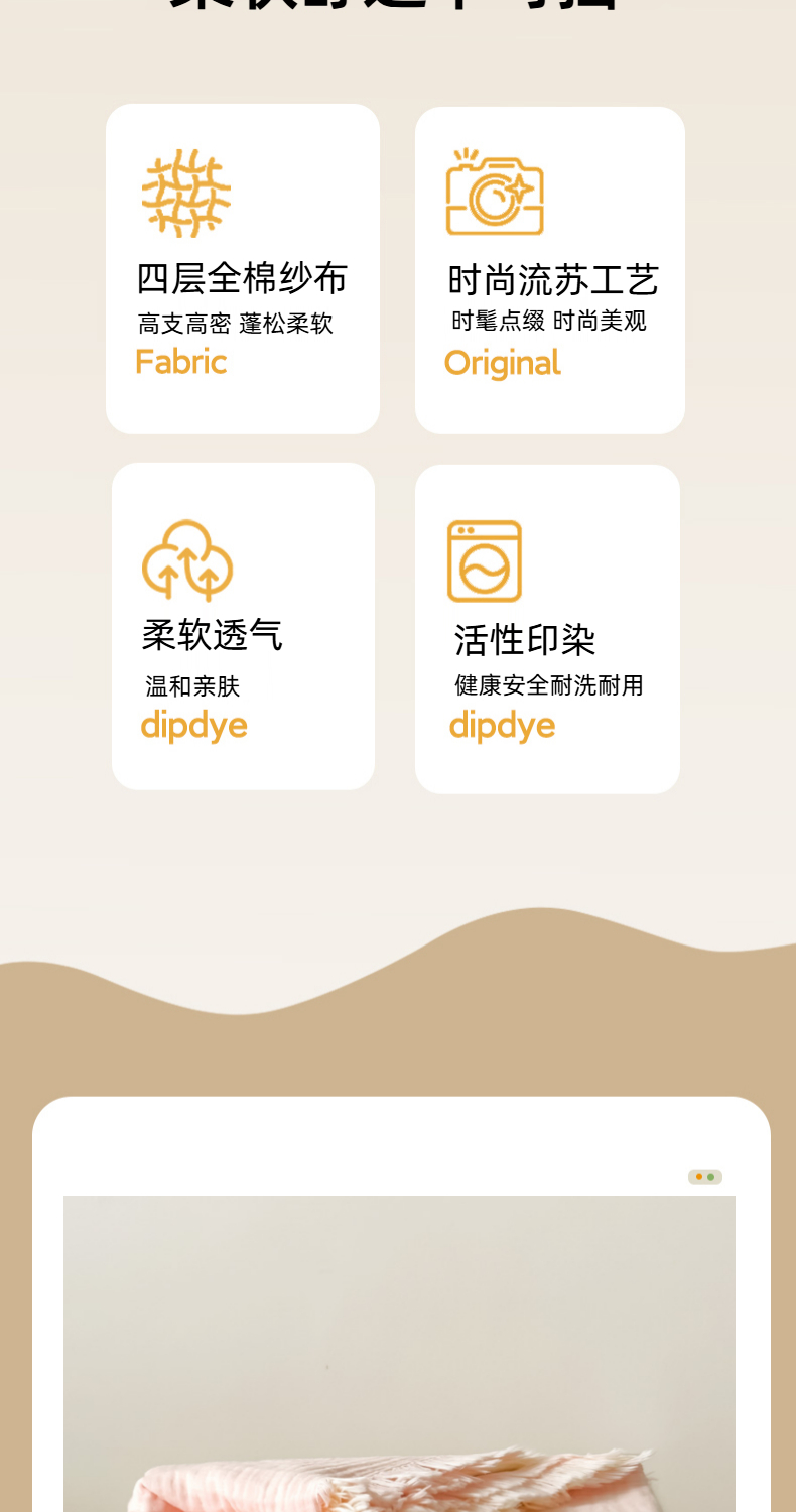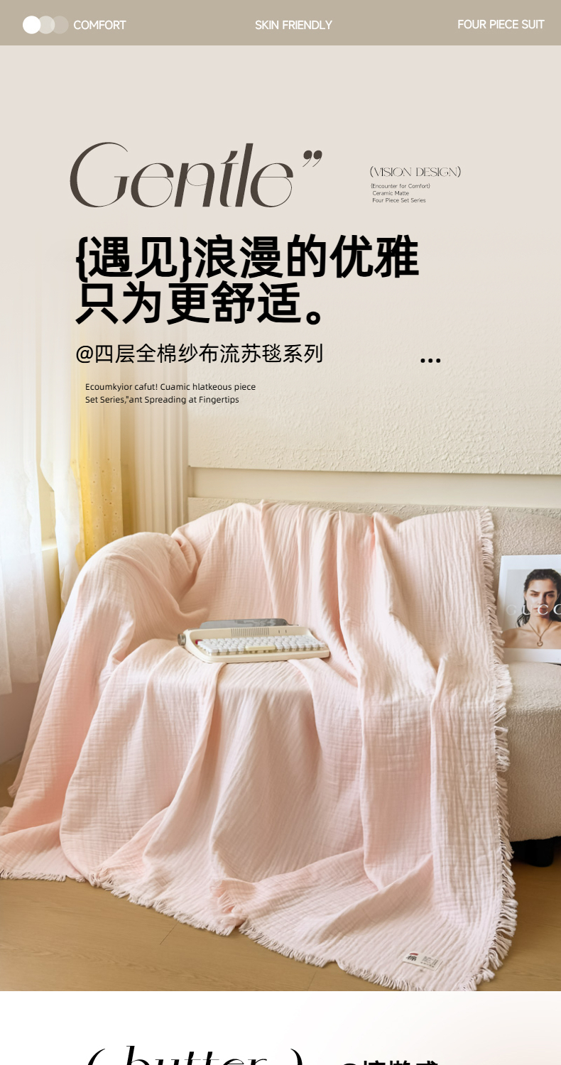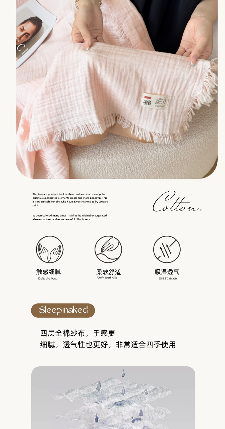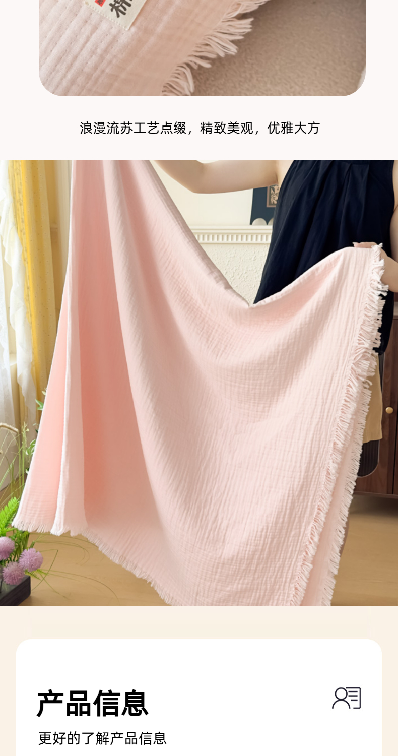 商品名称:(总)悦然毛巾被 2025新款全棉纯棉四层纱布流苏毯毛巾被 意境系列